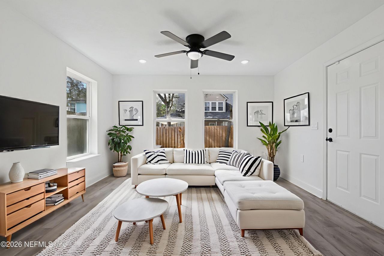Don't miss your chance to score this beautifully renovated Jacksonville Beach home with prime location! Featuring 2 stories, 3 bedrooms + 2 baths, this charmer is only 5 minutes from public beach access & parking. Upon entry, you'll find the kitchen right off of the dining space seamlessly connecting to the living room and updated full bath w/ walk in shower. Fresh paint and brand new laminate flooring flow through the entire home, along with the updated kitchen featuring new countertops, backsplash and appliances. (New Fridge and Dishwasher to be installed!) Upstairs are 3 bedrooms and the 2nd full bath with tiled shower tub combo. Outside you'll find covered front and rear porches complete with pavers and lush new sod. Fully fenced and perfect for backyard BBQs and soaking up the FL sunshine. Great opportunities for primary residence or AirBNB! Convenient to the beaches, St Johns Town Center, and more! Schedule your showing today!