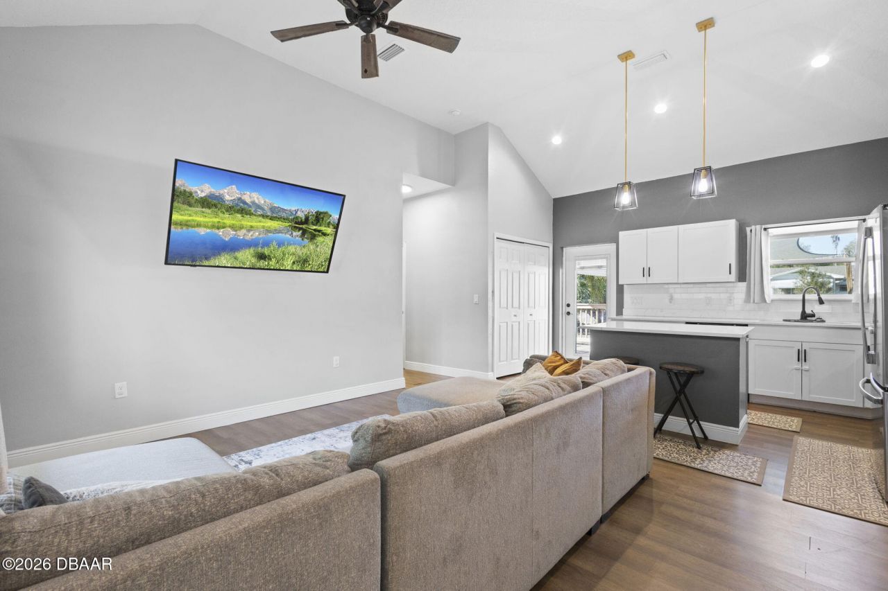 Located in the heart of DeLand this home was completely renovated in 2023 blending mid-century charm with modern convenience. Built in 1952 and situated on a generous 0.23-acre lot, this property offers a rare opportunity to own a turnkey home just minutes from Historic Downtown DeLand and Stetson University. The front door opens into a spacious, light-filled living and kitchen area featuring high ceilings. Gourmet Kitchen is equipped with quartz countertops and modern stainless-steel appliances. Functional Layout with one side of the home containing two bedrooms and 1.5 baths, while the other side features a private bedroom and full bath. The backyard features a large wood deck and mature palm trees, offering ample space for a fire pit or playground. Just blocks away from local shopping, medical centers, and the award-winning restaurants of downtown DeLand. Conveniently located near I-4 for easy access to Lake Mary, Orlando, or Daytona Beach.