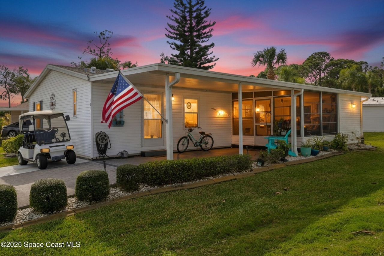 Not Far, close to Nasa,shopping,beaches,major travel arteries,not far from security gate and not far from the clubhouse!This home is perfectly located in the gated community of Lost Lakes!You own your land and your low HOA fee covers cable,internet,lawncare & security.this well maintained home with 2 bedrooms and two baths has waterproof laminate flooring throughout,a light and bright kitchen with island and chairs ,new windows and all the charm of Florida living .Your golf-cart is at your front door.This vibrant active community offers so much to enjoy from pickle ball,water arobics,holiday parties,and poker parties too!