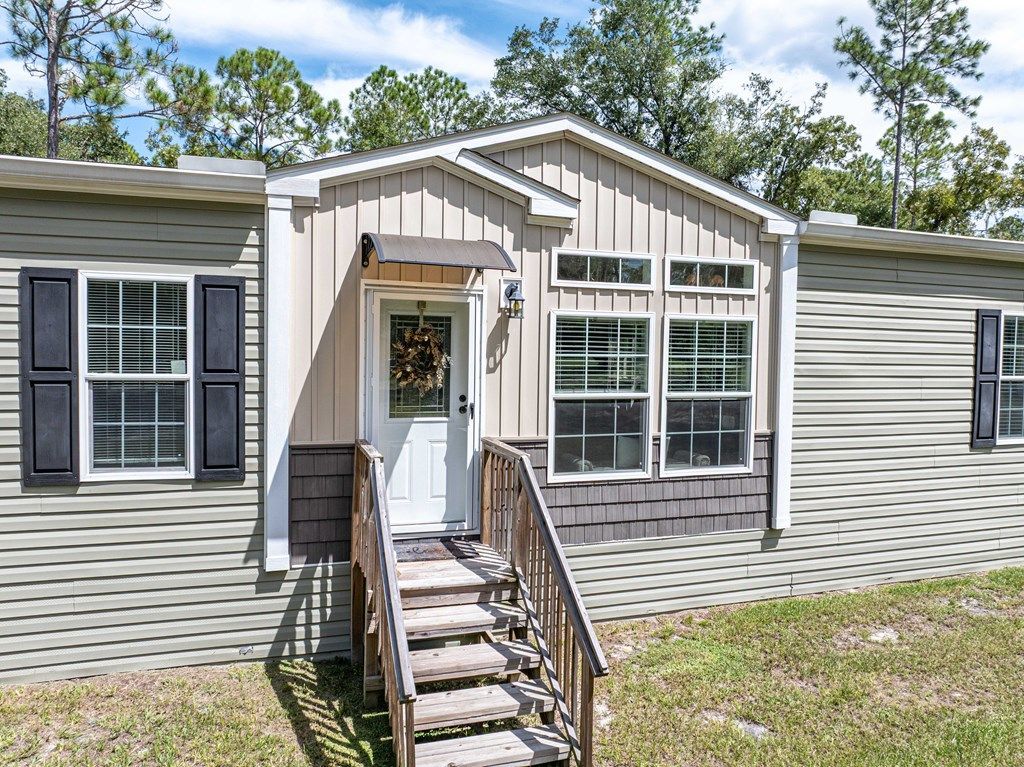 Look no further! This spacious 5 BDRM / 3 BA home offering 2,260 SF on 10 acres is the perfect private retreat. Nestled among native hardwoods and pines along a county-maintained limerock road, this private 10-acre tract features a cleared homesite surrounded by wooded acreage along the front, sides, and rear for exceptional privacy. Built in 2020, the main home offers a covered back porchan ideal spot to unwind while watching deer and other wildlife. Inside, the thoughtfully designed split floor plan includes a large family room with a fireplace, separated by stylish barn doors from the dining and kitchen area, plus an additional formal living room perfect for entertaining. The home features 9-foot ceilings with transom windows, allowing for abundant natural light, along with tape and textured walls throughout. Vinyl flooring runs through the main living areas, while new carpet adds comfort in the bedrooms. The kitchen has been fully renovated and is a standout feature, boasting custom cabinetry, new appliances, Corian countertops, a cast iron farmhouse sink, stainless steel 4-door refrigerator, Bosch dishwasher, stone subway tile backsplash, and a large island with seating for four and built-in microwave with recessed outlet. The utility room off the kitchen provides access to the back porch and a generously sized pantry with floor-to-ceiling shelving and space for a freezer. The primary suite has been completely upgraded, featuring a beautifully renovated bathroom with a tile shower, soaking tub, and double vanity with upgraded custom cabinetry and Corian countertops. Additional upgrades include an improved hall bath and a convenient Jack-and-Jill bathroom between two bedrooms, while a third full bath is located off the hallway between bedrooms four and five. Major system updates include upgraded windows and HVAC system, offering improved efficiency and comfort. The property also features a utility shed, chicken coop, and an RV hookup with 50-amp serviceperfect for visitors or additional flexibility. Located in the northern part of Gilchrist County, this property is just a short drive to the Santa Fe River and Suwannee River, as well as several nearby freshwater springs known for swimming, kayaking, and outdoor recreation. If youre looking for peaceful country living not far from a paved roadbut with the feel of total seclusionthis property is a must-see. Schedule your private showing today and experience this unique retreat for yourself!