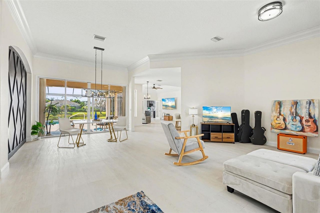 This custom Lee Wetherington residence in Summerfield Villages offers a rare sense of getaway within a peaceful neighborhood. Tucked away on a generous lot with quiet lake views, the house feels fresh and inviting, featuring a spacious layout filled with natural light and elegant crown molding. The kitchen is a standout for anyone who enjoys cooking, equipped with a 6-burner stove, stainless steel appliances, quartz counters, and plenty of storage to keep things organized.The outdoor space centers around a refreshing pool that looks out over the water-an ideal spot for quiet afternoons or weekend get-togethers. Practical updates offer peace of mind, including a roof from 2021, a new front door (2023), vinyl flooring, and a rescreened lanai. The three-car garage even comes with a generator transfer switch and a portable generator included. With an office for focused work and a guest suite that provides extra flexibility, this home makes daily life easy. Living here means being part of a community with quick access to local shops, dining, and parks, all while having a quiet retreat to call your own. Schedule your private showing today!