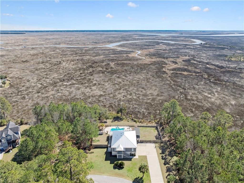 Immaculate marshfront home offering truly breathtaking views. From the moment you enter, you’re welcomed by wide-open living spaces designed to capture the scenery from nearly every room. The kitchen features lots of cabinetry with under cabinet lighting, high-grade granite countertops, stainless steel appliances, and island with breakfast bar. Travertine flooring flows throughout the main living areas, complemented by detailed crown molding and quality finishes at every turn. Step outside to the expansive rear deck with a screened porch overlooking the marsh—an incredible setting for morning coffee or evening sunsets. The primary suite offers private glass doors to the deck and screen porch and a spacious bath complete with a tile shower, soaking tub, and two linen closets. All four bedrooms include sturdy wood shelving in the closets for excellent storage. Built with strength and longevity in mind, this home is constructed on piers and pilings and showcases top-notch materials inside and out. The lower level features a large workshop area offering flexible space for hobbies, storage, or projects. Outdoors, enjoy your own private swimming pool with Jacuzzi with new pool equipment & salt water system. The pool is elevated with fresh landscaping including two new mature palm trees and landscaping. There is also an outdoor shower located near the pool. Functional aluminum Bahama shutters added to front windows and hurricane shutter system, including custom galvanized shutters, for all rear windows and doors. Carrier HVAC installed May 2023. Metal Roof and commercial grade Gutter and downspout system installed - June 2024. Water Heater 5 years old. Termite Bond with SSI Pest Arrest. Marshfront lot next door is available for sale