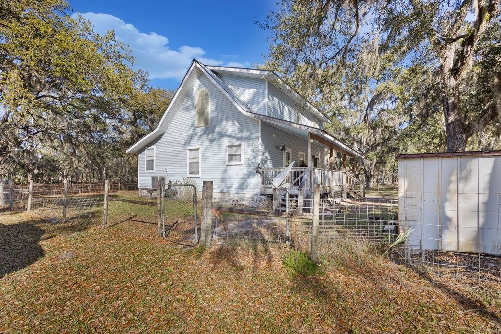 Escape to the quiet beauty of Old Florida with this well-maintained 2-story cracker-style farmhouse nestled on over 17+ acres of fully fenced land. Located just 8 minutes from Cedar Key and minutes from Shell Mound and the Lower Suwannee National Wildlife Refuge, and the Suwannee River for boating and fishing.This property offers the perfect blend of privacy, nature, and convenience. The home features 2 bedrooms and 2 bathrooms, with the potential for a 3rd bedroom, and an open floor plan ideal for comfortable living and entertaining. Classic farmhouse charm meets functional design, creating a warm and inviting space to call home. Outside, the possibilities are endless. The acreage is perfectly suited for horses, cows, goats, chickens, or other livestock. A pole barn with horse stalls is already in place, making this a ready-to-go farm. The property is dotted with beautiful mature oak trees, providing shade and that true Florida countryside feel. Whether youre looking for a homestead, hobby farm, or peaceful retreat, this property delivers space, versatility, and natural beauty in one incredible package. Call listing Agent for a showing.