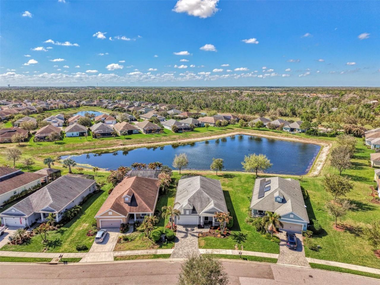 BETTER THAN NEW CONSTRUCTION! GENEROUS FINANCING INCENTIVES AVAILABLE WITH ACCEPTABLE AGREEMENT! Welcome to Rivers Reach, where natural Florida beauty meets thoughtful design. This well-appointed home offers 3 bedrooms, 3 full bathrooms, and a private office ideally positioned at the front of the home, perfect for working remotely or creating a quiet retreat.The open-concept floor plan places the kitchen, dining area, and great room at the heart of the home, creating a seamless space for everyday living and entertaining. Pocket sliding glass doors extend the living space to a spacious extended lanai, where you can relax and take in breathtaking sunset views over the peaceful pond. The generous backyard provides ample room to design and build your dream pool.The primary suite offers a spacious and inviting retreat with a charming bump-out area, ideal for a cozy sitting space or small desk overlooking the tranquil water views. Two walk-in closets lead to the well-appointed ensuite bathroom featuring dual vanities, an oversized walk-in shower, private water closet, and additional linen storage.The kitchen is designed for both functionality and gathering, highlighted by a large center island, slate appliances including a sleek slide-in range, microwave vented to the exterior, pot and pan drawers, and a custom pantry with countertop workspace and upper and lower shelving.Additional upgrades include a recently installed UV light in the AC system, paver driveway, private mailbox, recently painted exterior, and upgraded landscaping.Rivers Reach is surrounded by preserved natural Florida landscape and offers residents a peaceful setting with scenic views throughout the community. Enjoy direct access to the Manatee River along with resort-style amenities including a pool, spa, fitness center, and playground. Whether walking or biking through the community, the beauty of Rivers Reach is something you'll appreciate every day.