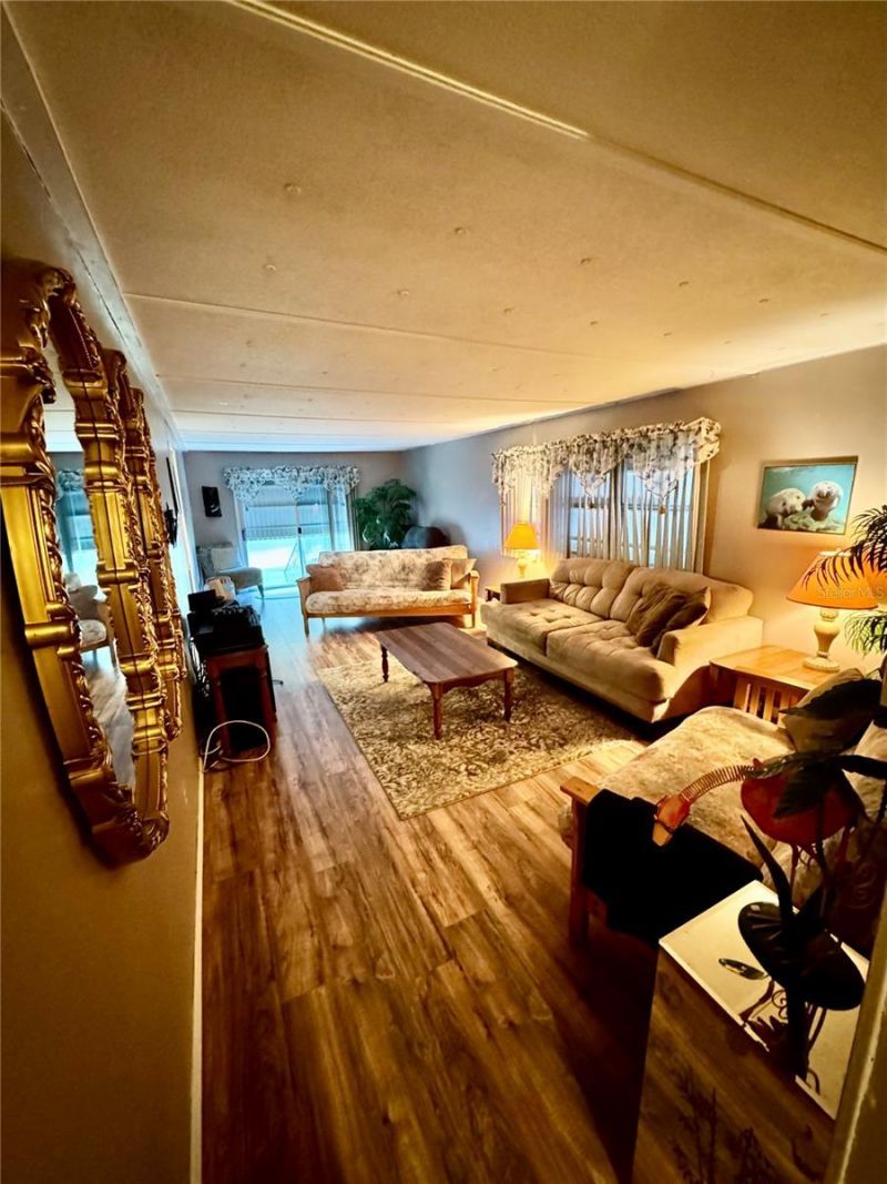 Welcome to this charming and well-maintained FULLY FURNISHED 3-bedroom, 2-bathroom home located in the quiet, sought-after community of Terra Mar Village in Edgewater, Florida. This residence offers a spacious and functional layout with comfortable living and dining areas, making it ideal for everyday living or a seasonal getaway. A large screened-in room serves as the perfect spot to relax, entertain guests, or enjoy Florida's beautiful weather year-round. The kitchen provides plenty of cabinet space and flows seamlessly into the main living areas. All three bedrooms are generously sized, and the primary suite features a private en-suite bath. Outside, you'll find a nicely sized yard with room to garden or enjoy outdoor activities. The property offers two separate driveways, an oversized carport, a spacious garage, and a bonus storage/laundry room-ideal for storing all your toys, tools, or hobby equipment. Residents of Terra Mar Village enjoy exceptional amenities, including two 40,000-gallon saline pools (one heated year-round), a private 300-foot fishing pier on the Intracoastal Waterway, and multiple outdoor recreation options such as shuffleboard, bocce ball, and horseshoe courts. The brick clubhouse hosts frequent community gatherings and events. Boaters will love the newly constructed marina with covered boat lifts and slips (leases currently available), plus a community boat ramp for easy access to the water. Affordable on-site RV and trailer storage is also available. This property offers the perfect blend of relaxation, recreation, and community-a fantastic opportunity for full-time living or a seasonal retreat.