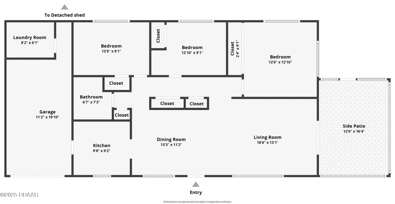 JUST LOWERED $5000!! This is a Beautiful Ranch home in the very desirable area of Florida Shores in Edgewater, Florida! This home is not in a Flood Zone and is high and dry. The Roof is a metal roof and was installed in 2014, only 11 years old. The Living Room/Dining Room combination is an open floor plan, and the Living Room is a generous 20X14 Feet. The Living Room has French Doors that open into the Large Patio. The Kitchen is a galley kitchen and has ample cabinet space and Refrigerator, Range, dishwasher and Microwave included. The Main Bedroom and other 2 Bedrooms are in the rear of the home give you both Privacy and Quiet. The Bathroom is Tiled and has a Shower and Tub combination. The Flooring is very nice Terrazzo flooring and is throughout the home. The Kitchen has a door to the garage which makes it easy for bringing groceries. The lot is 1/3 acre and has fencing around the back lot. There is a toilet in the laundry room. This home is priced for a quick sale!