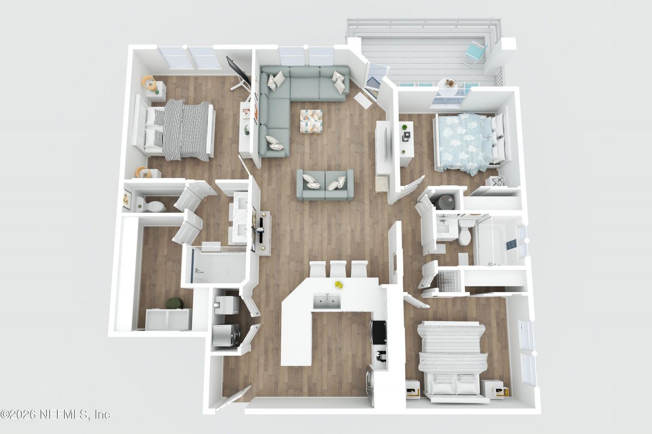 This stunningly renovated 1st floor end unit condo has unobstructed views of the ocean and the best views of all the units in the building! Enjoy gorgeous sunrises from your large outdoor deck with custom built in seating, while sipping your coffee in the morning and lovely ocean breezes while entertaining in the evening. Split floor plan with large open, bright and airy kitchen and living area. Everything new from LVT high end flooring to crown molding, bathrooms, kitchen, appliances, impact windows, solid 3 panel doors, custom lighting, high efficiency water heater & so much more. See full list of upgrades in ''documents'' section. One of the lowest HOA fees in Jax Beach! This unit comes with a large storage unit 2 doors down for bikes & beach gear! Five minute walk to Margaritaville, shops & restaurants. 1 assigned parking space and plenty of guest and additional parking just steps away. New beach access walkover. HOA allows minimum 9 month rental terms. No Air BnB allowed.