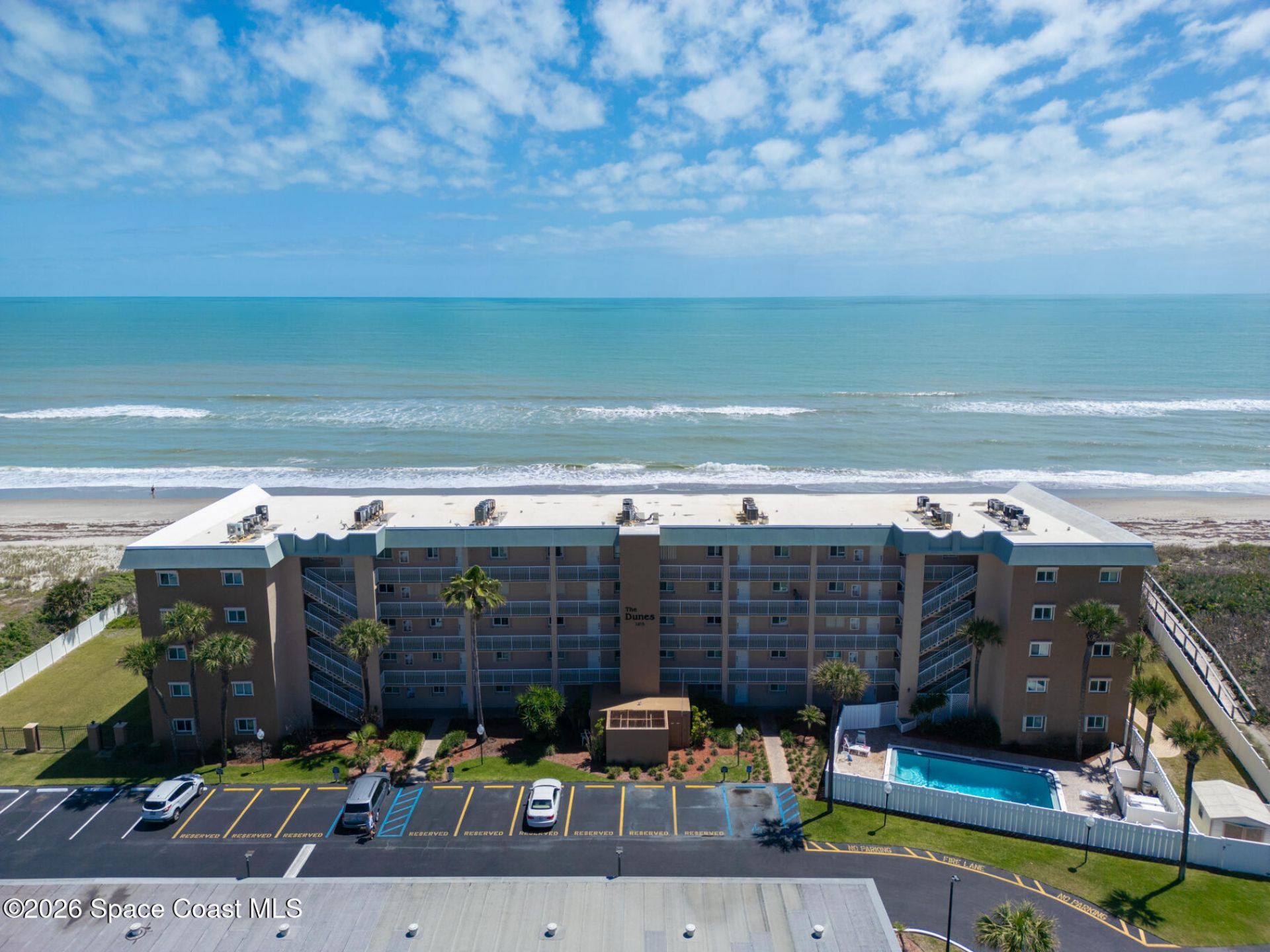 DIRECT OCEANFRONT 2-Bed, 2-bath 4th-Floor condo with UNOBSTRUCTED OCEAN VIEWS! Enjoy ocean breezes and rocket launches from your private balcony patio! The primary features direct ocean views, an updated en suite bath with newer fixtures, a tiled walk-in shower and generous walk-in closet. In-unit laundry & guest bed & bath add convenience. Improvements of newer flooring, hot water heater and electrical panel complete the package. A 1-car garage with storage, impact windows, sliders storm shutters add piece of mind. This condo is move-in ready and renter-friendly with a 1-month minimum. Residents at The Dunes enjoy private beach access, boardwalk, clubhouse and heated pool. Cable, internet, sewer, trash, water and full-time maintenance are included in the LOW HOA fee! No upcoming assessments & milestones passed! Ideally located between the Eau Gallie and 192 causeways, only 5 minutes to downtown Melbourne shopping and dining, and steps from the sand. Oceanfront living awaits!