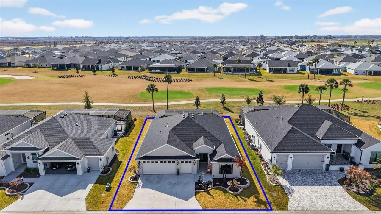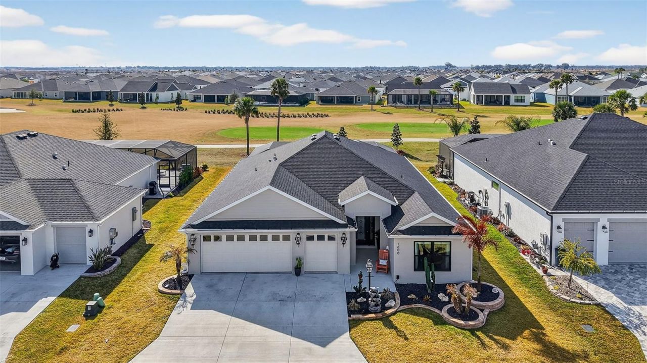 Designer Mockingbird model sold FURNISHED with a POOL in the Village of Shady Brook, perfectly positioned on the 14th hole of Shadow Creek championship golf course, is a must see. From the moment you enter, soaring ceilings and abundant natural light frame a breathtaking view straight through the spacious living area to the sparkling pool and pristine fairway beyond. The seamless indoor and outdoor sightlines create an immediate sense of tranquility. The kitchen showcases beautiful granite countertops, soft close pull out drawers, stainless steel appliances, and a gas stove, with a charming breakfast nook just off the kitchen. It overlooks the expansive dining and living room combination, creating an ideal layout for entertaining family and friends. The primary bedroom offers one of the best views in The Villages. Wake up to stunning views of the pool and golf course right from your bed. This retreat features tray ceilings, dual walk in closets, split vanities, a private water closet, and a Roman shower. The guest wing includes a pocket door for maximum privacy, two generously sized bedrooms, and a full bath, making it perfect for visitors. The true showpiece of this home is the stunning salt water heating and cooling pool and championship golf course setting. Imagine enjoying your morning coffee surrounded by peaceful nature and sweeping fairway views. A two car plus golf cart garage adds extra convenience and storage. A short golf cart ride to Eastport and Middleton! Schedule your private showing today and experience this exceptional golf front pool home for yourself.
