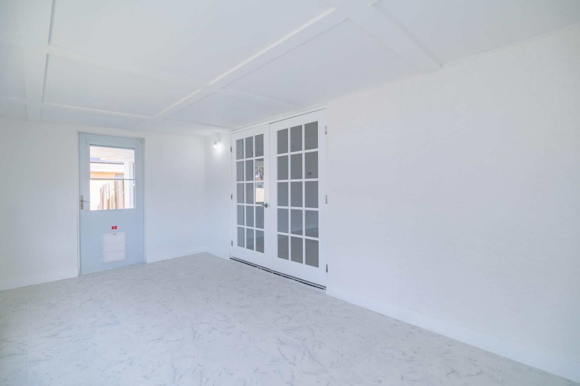 Welcome to this beautifully renovated Palm Bay home offering modern style, open living, and effortless Florida comfort. Set on a desirable corner lot, this light-filled residence features an open-concept layout anchored by a striking double-sided fireplace that serves as a true architectural focal point. Large-format marble-style tile flows throughout the main living areas, complemented by new wood-look flooring in the bedrooms. Major upgrades include a new roof (2025), new A/C unit (2025), and impact glass windows, providing peace of mind and energy efficiency. The updated kitchen showcases white shaker cabinetry, stone countertops, stainless steel appliances, and a generous peninsula ideal for casual dining or entertaining. The primary suite features an updated bathroom with a private sauna, creating a true at-home retreat. Outside, enjoy a wide driveway, two-car garage, mature palm trees, and a versatile yard with room for a pool or outdoor living. With modern finishes, no HOA, and move-in-ready condition, this home is ideal for full-time living, seasonal use, or investment in a convenient Palm Bay location.