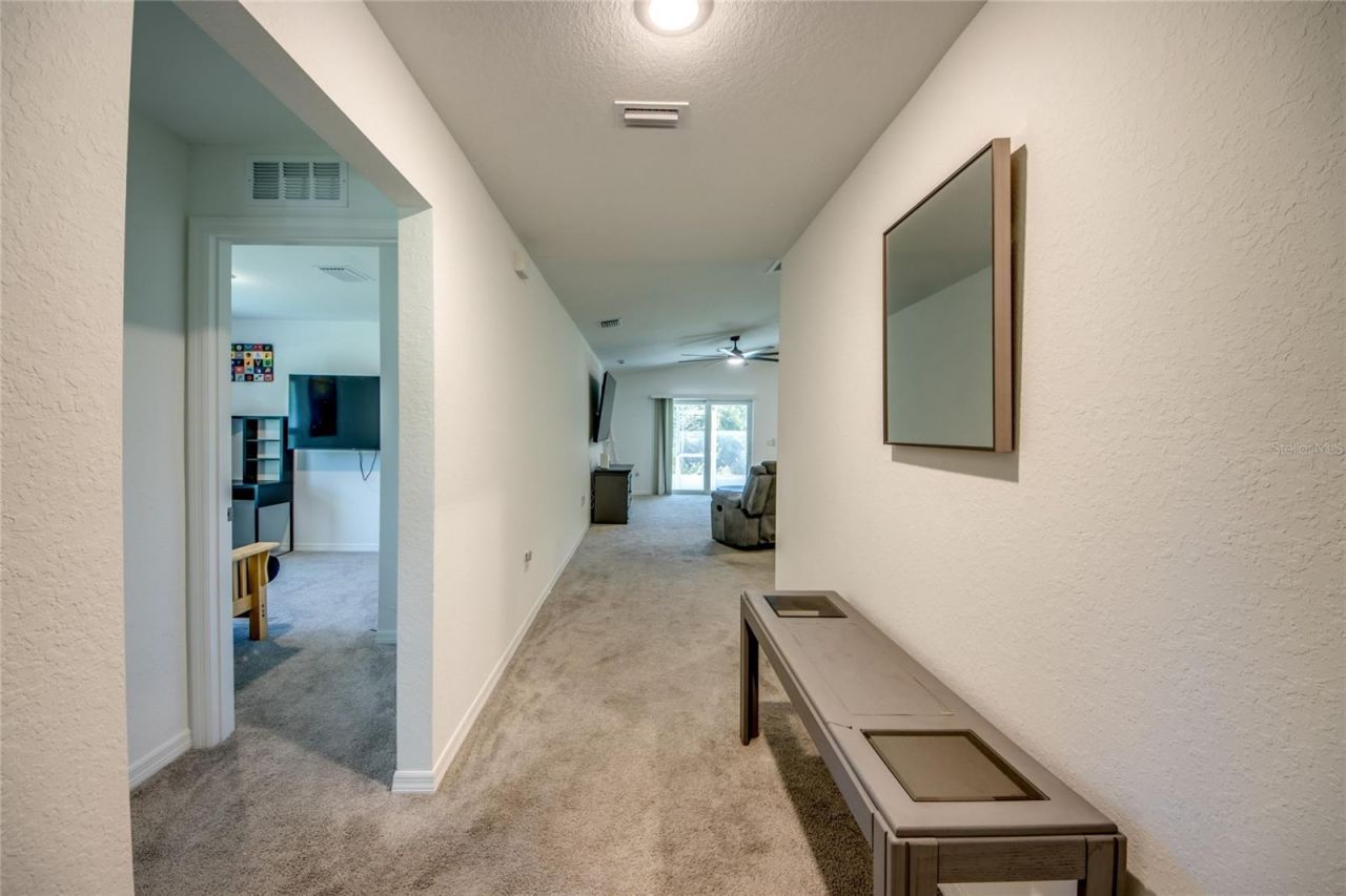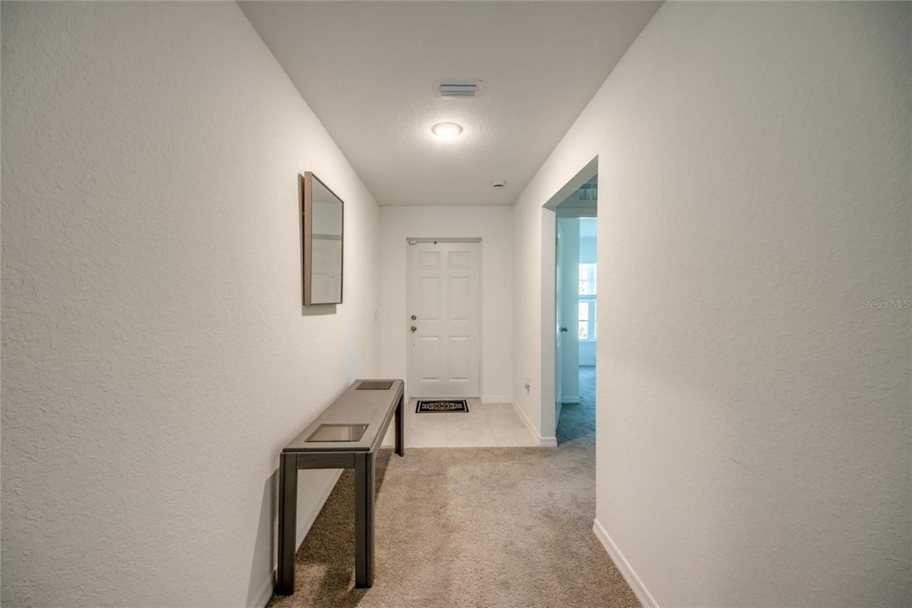 Built in 2025 this lightly lived home is in a quite neighborhood. The spacious Great Room has vaulted ceilings and flows from the moment you walk in to the screened in private covered lanai. Outdoor space is deal for indoor-outdoor living and entertaining. At the core of the home's open floor plan, the kitchen stands out with its central island, walk-in pantry, and custom designer cabinetry, flowing effortlessly into a bright dining space enhanced by vaulted ceilings and filled with plenty of natural light. The huge primary suite offers a spacious walk-in closet and a walk in shower complete with dual sinks, a tiled shower, and built-in linen storage. Located just a short drive to plenty of dining, shopping and entertainment options and complete impact-rated windows and doors, stainless steel appliances, and a two-car attached garage.