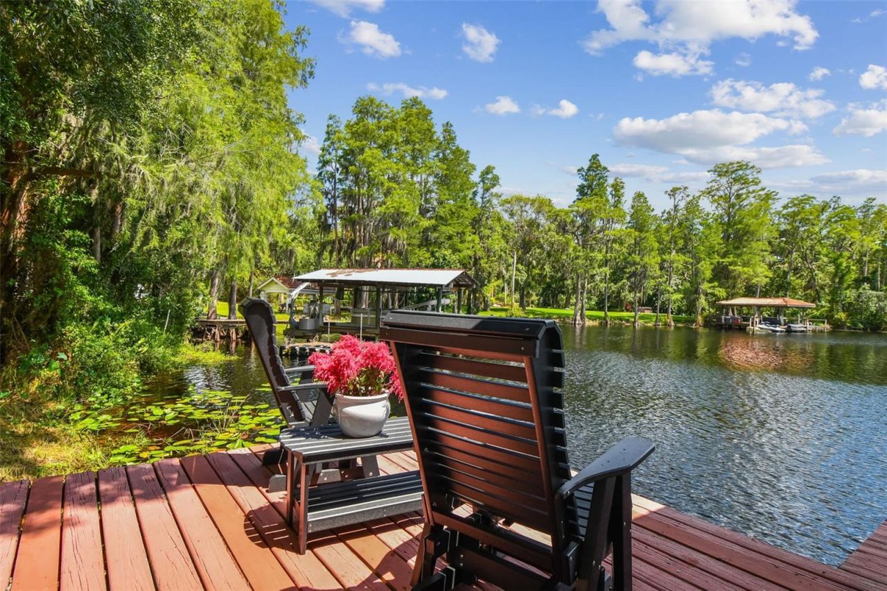 One of only TEN HOMES within the gated enclave of Pretty Lake Estates, this exceptional LAKEFRONT PROPERTY offers a rare combination of PRIVACY, SCALE, and exclusivity in Tampa Bay. Now presenting a RARE opportunity on Lake Pretty-recently enhanced with over $100,000 in curated upgrades, major system improvements, and ongoing enhancements.This ONE-STORY residence sits on a 0.85-acre SKI-LAKE CUL-DE-SAC LOT with over 140 feet of pristine frontage, offering 4 bedrooms, 3.5 baths, and sweeping PANORAMIC LAKE VIEWS FROM EVERY ROOM. A LONG, PRIVATE DRIVEWAY creates a sense of arrival, leading to a GRAND DOUBLE-DOOR ENTRY framed by a tranquil koi pond. Inside, SOARING CEILINGS and slate flooring transition seamlessly into HAND-SCRAPED BRAZILIAN CHERRY WOOD, anchoring the living room's WOOD-BURNING FIREPLACE and drawing the eye toward uninterrupted LAKE VIEWS beyond. The chef's kitchen is both refined and functional, featuring DUAL ISLANDS with exotic granite, FLOOR-TO-CEILING WOOD CABINETRY, TRAVERTINE FLOORING, and upgraded appliances including a BOSCH microwave/convection oven and GE CAF?? INDUCTION COOKTOP. A SPACIOUS SECONDARY FAMILY ROOM offers flexibility for both everyday living and effortless entertaining. The primary suite serves as a true retreat, offering expansive LAKE VIEWS, DUAL WALK-IN CLOSETS, and a spa-inspired bath with MARBLE FLOORING, a rain shower with built-in seating, and full-height marble finishes. Two guest bedrooms share a JACK-AND-JILL BATH, while an additional bath conveniently serves as the POOL BATH. Outdoors, the home transforms into a PRIVATE RESORT-STYLE RETREAT. A COVERED LANAI with skylights and updated ceiling fans seamlessly extends the living space, leading to a fully equipped OUTDOOR KITCHEN featuring stacked stone, granite surfaces, a built-in grill, sink, storage, and draft beer tap, designed for effortless entertaining. At the center, an OVERSIZED SALTWATER MARCITE POOL is set on a natural cooling flagstone deck, offering both comfort and slip-resistant functionality. Surrounded by LUSH LANDSCAPING and curated landscape lighting beneath mature oak trees, the entire setting delivers a rare sense of privacy, ambiance, and elevated outdoor living. Recent improvements were completed with a focus on long-term value, including a NEW PLATINUM-PROTECTED ROOF (2025), RELOCATED ELECTRICAL PANEL, NEW METER, ALL-NEW DUCTWORK with UV SYSTEMS, upgraded ventilation and registers, DUAL WATER HEATERS, and a 300-FOOT DEEP WELL with advanced water treatment. Additional enhancements include IMPACT-RATED WINDOWS AND DOORS, refined landscaping and lighting, and ongoing PROFESSIONAL HVAC SERVICING. With substantial investment in core systems and infrastructure, the home delivers exceptional behind-the-walls value-while its design remains beautifully adaptable to reflect YOUR OWN VISION and lifestyle. With a PRIVATE DOCK and LIFT on a PREMIER SKI LAKE-and a 2012 SEA RAY 190 SPORT BOAT available separately-the property delivers the FULL FLORIDA WATERFRONT LIFESTYLE! Ideally located just minutes from scenic trails, bike paths, and dog parks, the SUNCOAST/VETERANS EXPRESSWAY providing convenient access to DOWNTOWN TAMPA, TAMPA INTERNATIONAL AIRPORT, premier dining, shopping, and zoned for TOP-RATED STEINBRENNER HIGH SCHOOL. This is LAKEFRONT LIVING, REIMAGINED and ready to be experienced. Schedule your private showing today!