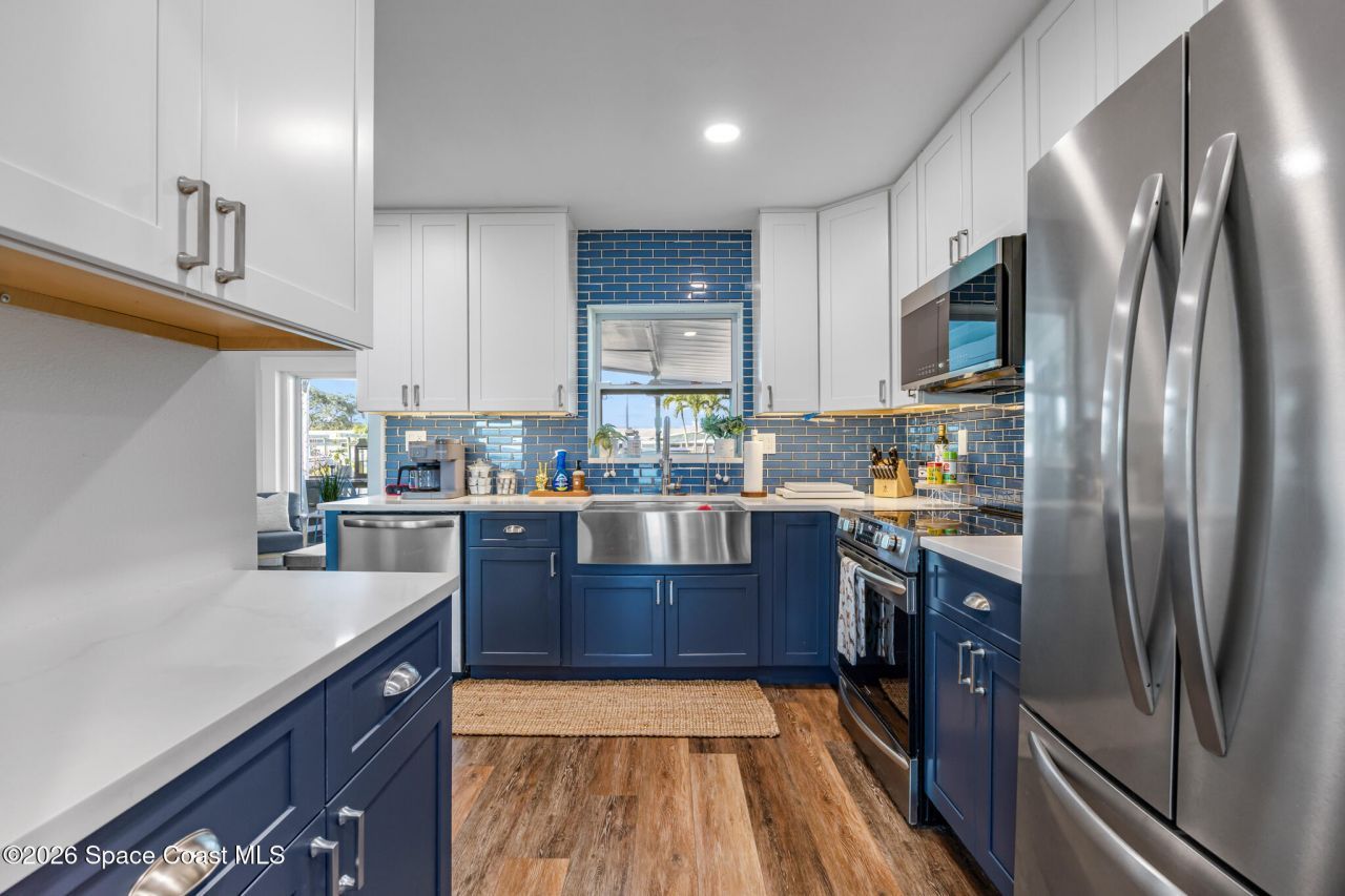 This is the waterfront lifestyle people come to Florida for. Fully updated, furnished, and move-in ready, this 4-bedroom, 2-bath canal-front home offers 1,860 living square feet with direct access to the Banana River, making sunset cruises and weekend sandbar trips part of everyday life. Major upgrades include a standing seam metal roof, impact windows and doors, updated PVC waste lines, PEX supply lines, updated electrical, and an on-demand water heater. Inside features fresh paint, luxury vinyl plank flooring, 5¼-inch baseboards, and a bright, updated kitchen with stainless steel appliances. Outside, enjoy an outdoor kitchen, paver deck with fire pit, irrigation with artesian well, extra boat or trailer parking, and two 10,000 lb boat lift. Minutes to Kelly Park, Port Canaveral, beaches, dining, and easy access to Orlando.