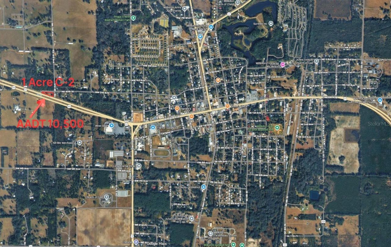COMMERCIAL 1-ACRE LOT ON ALT US HWY 27 (STATE ROAD 500) - JUST OUTSIDE WILLISTON CITY LIMITS!Excellent opportunity to develop your business in a high-visibility location along Alt US Hwy 27 / Florida State Road 500, a major north-south corridor with strong daily traffic exposure. This 1-acre C-2 Neighborhood Commercial parcel is ideally positioned approximately 1/4 mile outside Williston city limits, offering the advantage of lower Levy County taxes while remaining minutes from town amenities.The property features multiple access points, including three adjoining road frontages plus a median crossover on Alt US Hwy 27, allowing convenient access from both northbound and southbound traffic directions. Annual Average Daily Traffic count is approximately 10,500 vehicles, providing outstanding visibility for future commercial use.Zoned C-2 Neighborhood Commercial, intended for businesses serving surrounding community needs (buyer to verify permitted uses with Levy County). Existing power pole nearby; property will require well and septic installation.Conveniently located less than 2 miles from Cedar Lakes Woods & Gardens, Devil's Den Prehistoric Spring, and Blue Grotto Dive Resort, and approximately 11 miles from HITS Ocala, placing the property near established tourism and equestrian destinations that attract consistent regional and seasonal traffic.Located in Levy County with quick access to Williston, Gainesville, and surrounding North Central Florida markets, this site offers flexibility for investors, entrepreneurs, or owner-users looking to establish a new commercial venture.Bring your vision and build your next opportunity!