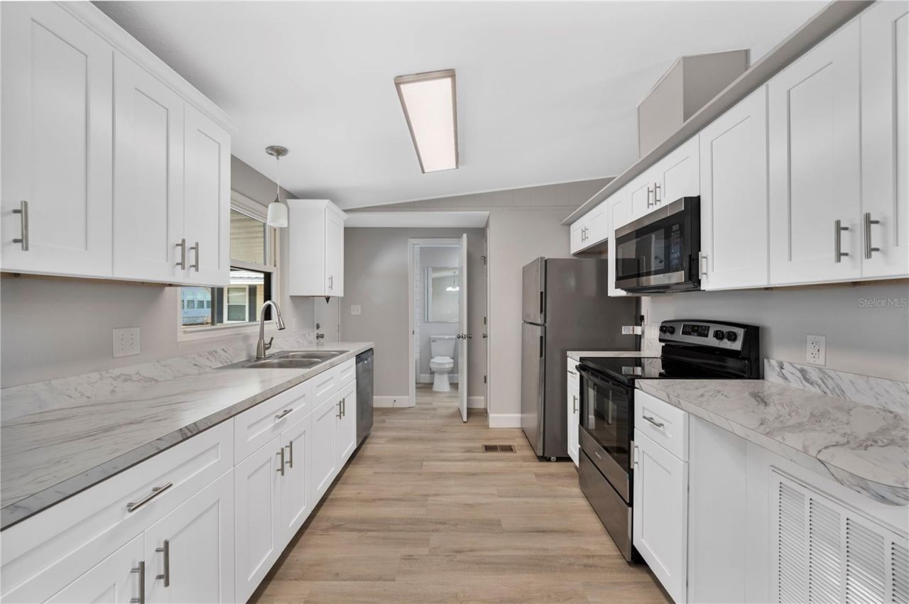 Welcome to this newly renovated lakefront retreat in the desirable 55+ Floral Lakes community in Bartow, Florida. This move-in-ready home has been thoughtfully updated from top to bottom, featuring a new A/C system, re-piped plumbing, all new flooring, and fresh paint inside and out. The bright, open layout offers a spacious living area with large windows and a sliding glass door that fill the home with natural light while showcasing peaceful lake views, along with a dedicated dining space ideal for everyday living or entertaining. The brand-new kitchen is both stylish and functional, complete with stainless steel appliances, new cabinets, and beautiful new countertops. Both generously sized bedrooms feature bay windows, private ensuite bathrooms, and ample space, with one also offering a walk-in closet. Outside, you'll enjoy tranquil waterfront scenery, an enclosed rear porch perfect for relaxing, and new landscaping that enhances the home's curb appeal. A two-car carport includes a utility room with a small workshop area, and the washer and dryer are included for added convenience, making this an exceptional opportunity for comfortable, low-maintenance lakefront living!Community amenities include a sparkling pool, shuffleboard courts, a clubhouse, boat ramp, and more - designed to support an active and social lifestyle. Golf carts are allowed throughout the community.