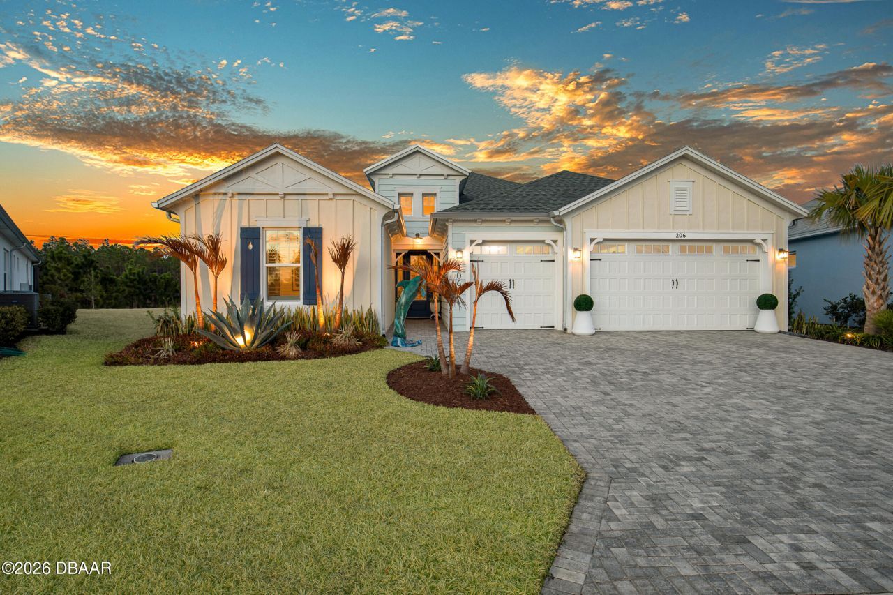 Welcome to Latitude of Margaritaville, an incredible enclave community located in Daytona Beach, Fl.. only 6 miles from the beach. This custom Minto built St. Barts model home was professionally designed & is situated on an oversized preserve lot (.25 acre) at the end of a quiet cul de sac. This exceptional residence is completely furnished (turnkey ready) & decorated with appointed high-end finishes throughout ... truly move in ready to enjoy your Florida retreat! The home must be sold furnished at an additional cost to list price. Details available. Step inside to a stunning Great Room featuring a custom built wall unit with an integrated 72'' electric fireplace, creating a dramatic focal point of the home. The alternate floor plan includes a Study with elegant 8-foot glass double doors, four panel sliding glass door to invite the rear view inside the home & 2 ensuite Guest Bedrooms. The Gourmet Kitchen is a dream culinary layout, equipped with quartz countertop electric cooktop with custom vented hood, glass cabinet doors, pull out drawers, beverage fridge & expanded pantry area for maximum storage. Additional upgrades elevate the home's style and comfort with 8' interior doors, large tile planked floors throughout, 3.5 plantation shutters, and high-end designer lighting with dimmer controls throughout. The spacious Master Bedroom Suite features a luxurious spa-inspired shower with seamless glass enclosure, upgraded cabinetry and mirrors, and separate walk-in custom Hers and His Master Closets. Both the 2nd and 3rd bedrooms feature walk-in glass showers, private walk-in custom closets to offer a private luxurious guest experience. The property affords the finest in resort living with complete professional landscape, nightscape lighting, and an expansive patio overlooking the Preserve; offering ultimate privacy and entertainment with a gas firepit and spa. Live within nature! With only 3 homes located on the cul-de-sac, enjoy early morning sunrises through the forest, gorgeous sunsets overlooking the Preserve, and private rear gate egress into the community.5 star world class amenities with paradise pool, on site restaurant, fitness center with live classes, pickleball, wood workshop, Mango theater, private beach club with shuttle service and more.