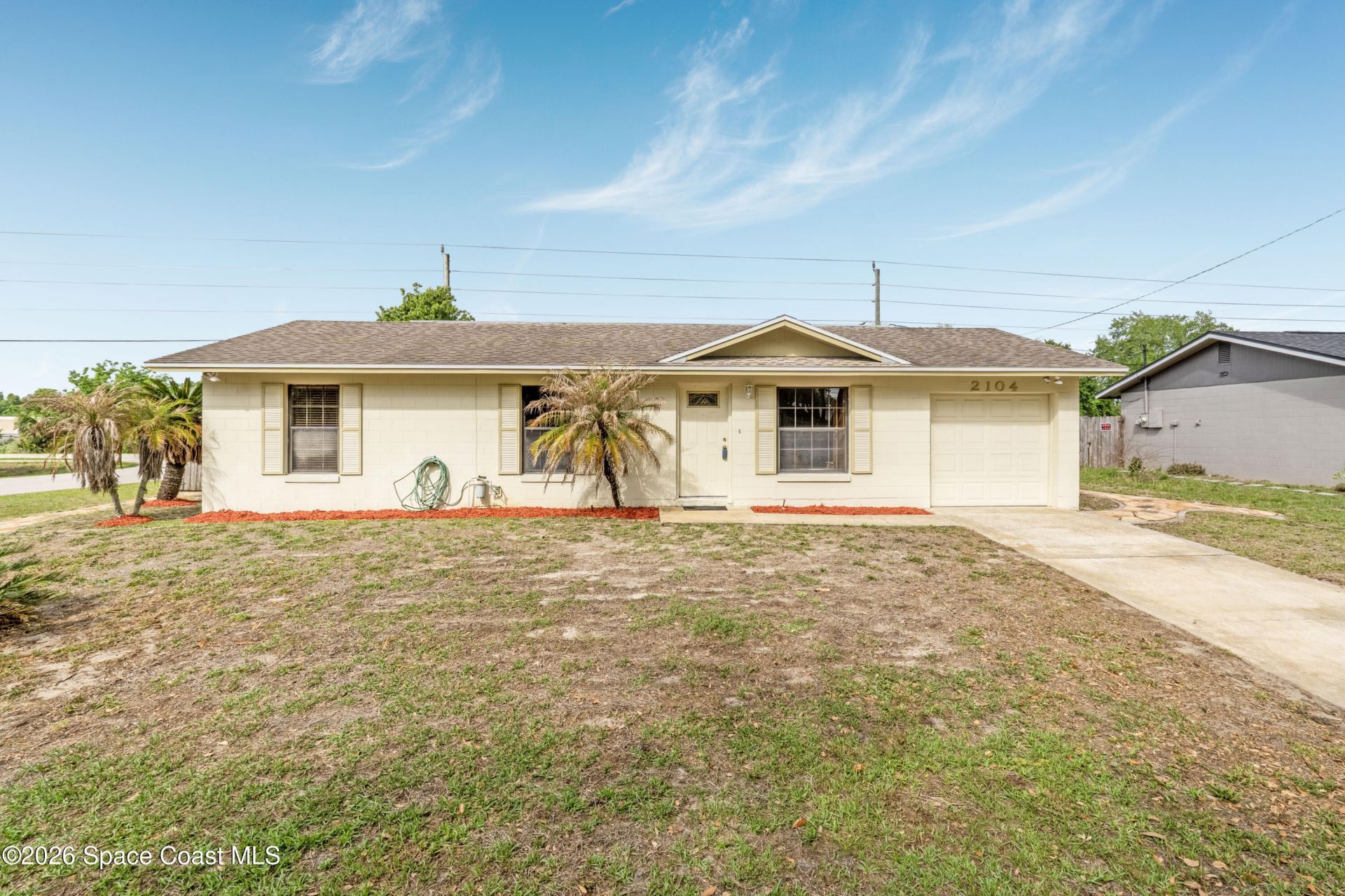 Welcome to 2104 Watts Drive in Mims, Florida -- a comfortable home with plenty of potential and Florida charm. Sitting on a roomy lot with mature trees, this property offers peaceful surroundings and space to make it your own. Inside youll find a practical layout with bright living areas, a functional kitchen, and good-sized bedrooms ready for your personal touch. The home has been cared for over the years and offers a solid foundation for updates or improvements at your own pace. Outside, enjoy a spacious yard perfect for pets, hobbies, or weekend projects. Conveniently located near US-1 and I-95, youre just minutes from Titusville, local shops, and the Space Coasts natural beauty. If youre looking for an affordable home with character and room to grow, this Mims property is worth a closer look.