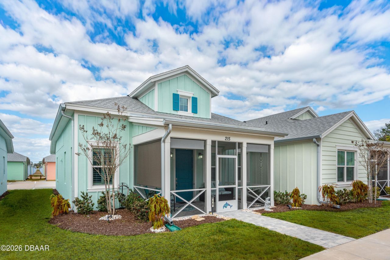 Live every day like a getaway in this beautifully appointed Bamboo model cottage (only 2 years old) located in the iconic Latitude Margaritaville Daytona Beach. This sought-after, gated 55+ community captures the laid-back lifestyle inspired by the music and spirit of Jimmy Buffett, offering a true resort-style experience from sunrise to sunset. Just outside your front door, you'll find a scenic walking and jogging trail along with a gorgeous neighborhood park--perfect for morning strolls, fresh air, and connecting with neighbors. Inside, this home offers the ease of low-maintenance living with the comforts of thoughtful design and style. the Bamboo floor plan is light, open, and inviting. The home features two generous bedrooms, two full bathrooms, and a two-car garage. With approximately 1204 square feet of open-concept living space, you'll appreciate the high ceilings, wood and tile flooring, a spacious kitchen with a large center island and bar for enjoying breakfast and it's ideal for entertaining, and a welcoming front porch that invites you to slow down and savor the moment. In this private, gated 55+ community you will enjoy beautiful amenities: 3 heated pools, a private beach club, the on property restaurant The Bar & Chill to enjoy live music, Fitness Center, Tennis & Pickleball courts, a dog park and just enjoying life with friends. All measurements approximate.