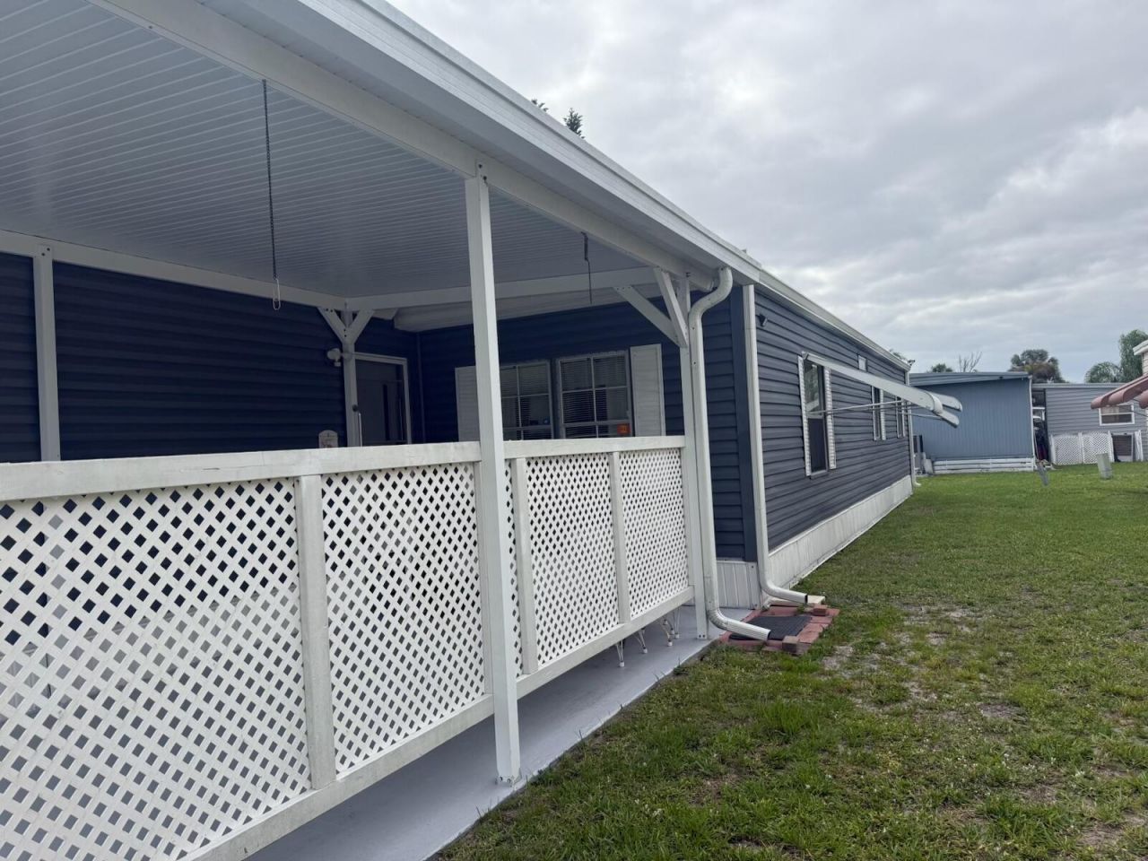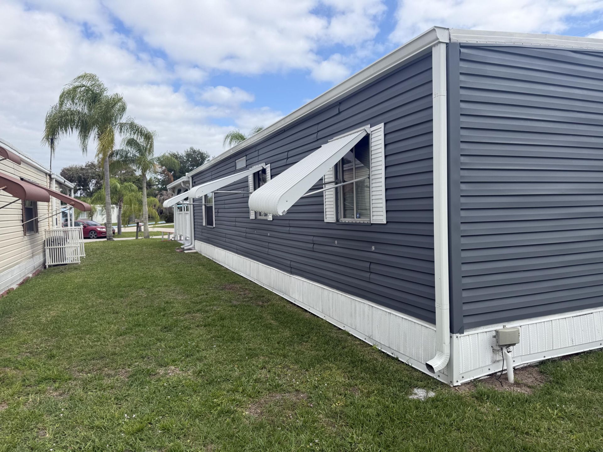 Land Lease Home-$833.06 Welcome to this beautifully maintained 2-bedroom, 2-bathroom home located in the desirable 55+ community of Spanish Lakes. This move-in ready residence features a 2018 A/C, sealed roof (May 2025), and a new water heater (February 2025). All windows have shutters, and the home is equipped with gutters, and an ADT security system for added peace of mind. Enjoy vinyl flooring in the living and dining areas (installed 2020) and cozy carpet in both bedrooms. Washer (2023) and dryer (2022) are included. Experience comfortable and worry-free living in this wonderful active adult community with resort-style amenities.