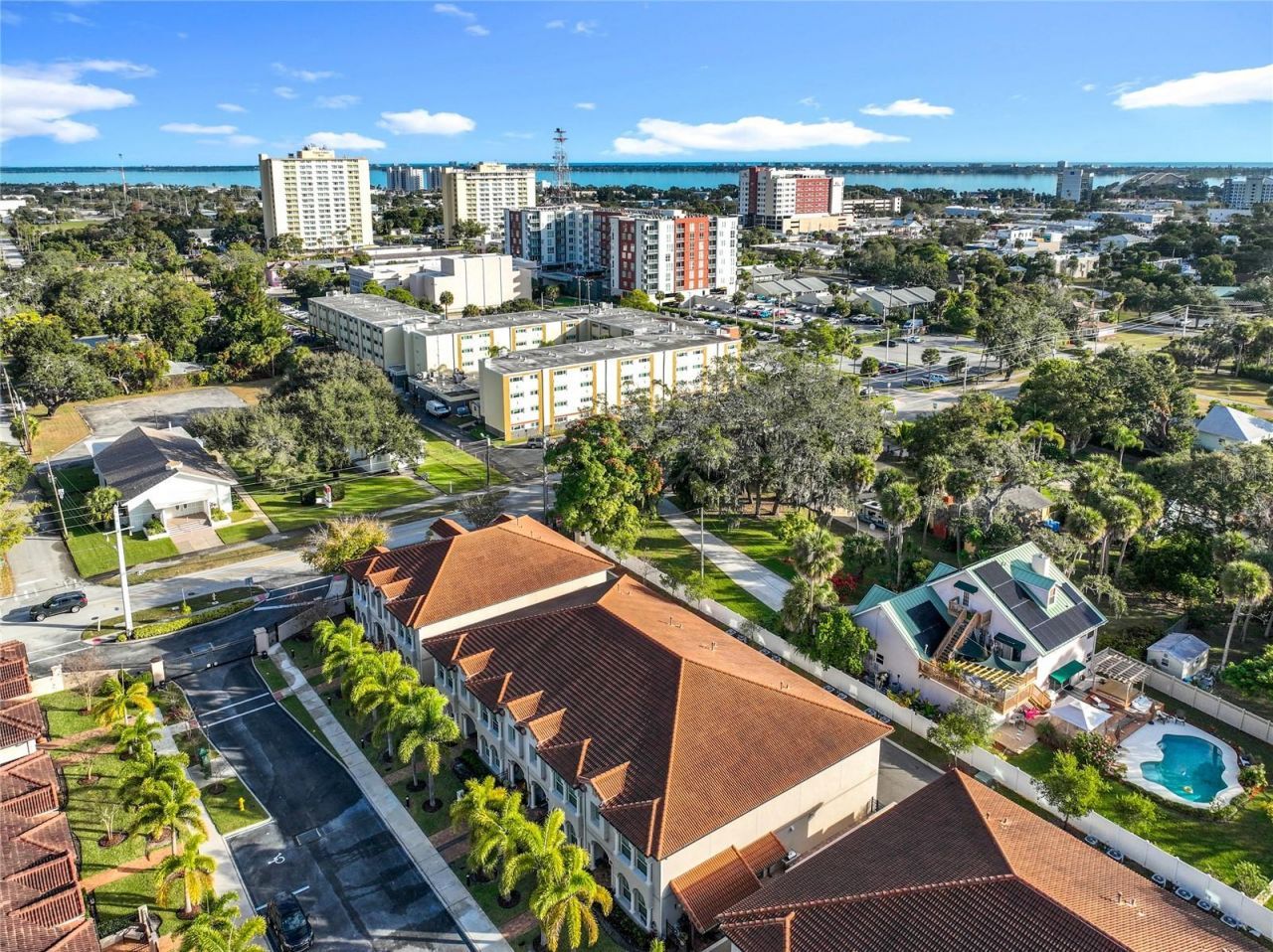 Luxury WATERFRONT TOWNHOME in GATED Downtown Community! Discover this LIKE-NEW, gently used FURNISHED 2,424 sq. ft. Mediterranean-style townhome in an exclusive, gated waterfront community just steps from vibrant downtown Melbourne's top restaurants and shops. Nestled at the end of a private no-exit road, a few steps to the creekside community pool, this elegant tile-roofed residence offers privacy, upscale amenities, and an unbeatable location. Step through grand double glass entry doors into a bright and open floor plan filled with arched windows, recessed lighting, plantation shutters, and crown molding. There is an upstairs BONUS ROOM/LOFT currently being used as a Media Room. Exceptional storage abounds, featuring under-stair storage and a rare, PRE-DESIGNED ELEVATOR SHAFT-currently serving as home office on the first and storage closet on the second floors-offering the opportunity for future elevator installation. The spacious gourmet kitchen boasts upgraded LEATHER FINISHED QUARTZ, 42 cabinetry, an electric stove for the master chef, and a large prep island overlooking the expansive great room. The upstairs primary suite is a true retreat, featuring a cozy sitting area, and a massive walk-in closet to accommodate your entire wardrobe. Two additional generously sized bedrooms and an upstairs laundry room with built-in cabinetry enhance functionality. Enjoy the private, fenced front courtyard, ideal for relaxing with your pet while enjoying the breeze. The rear-entry two-car garage provides added convenience, while ample storage ensures everything has its place. Community amenities include a picturesque creekside pool, a dock for fishing or launching paddleboards/kayaks, and a storage rack for water equipment-where you might even spot manatees! This sophisticated turnkey home is ready for you to move in!