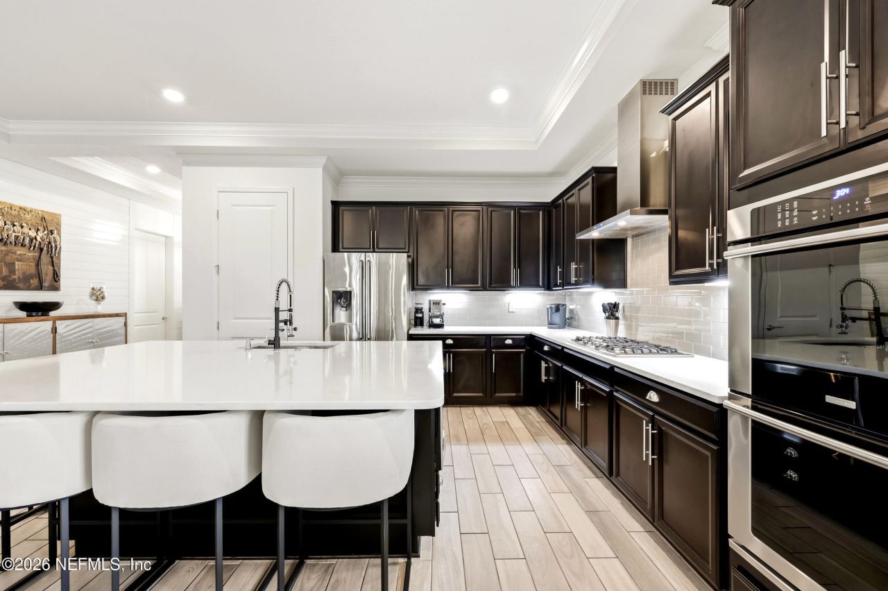 Exquisite 4BR/3BA luxury home in the prestigious gated community of Beachwalk, featuring the stunning 15-acre Crystal Lagoon! This single-story masterpiece boasts soaring 10' ceilings, crown molding, and an open-concept floor plan designed for effortless entertaining. The chef's kitchen is a showstopper with an extended quartz island, premium cabinetry, designer finishes, and ample space for gatherings. Relax in the 300 sq. ft. enclosed sunroom (not included in square footage) or hostoutdoor soir?es at the custom summer kitchen with paver patio, all overlooking serene lake views. Refined details throughout include designer tile floors, custom accent walls, elegant wallpaper, plantation shutters, built-in wine bar, and custom closets. Additional highlights include a 3-car garage, whole-house generator, water softening system, and abundant storage. Beachwalk's resort-style amenities are unparalleled: Enjoy the lagoon's white-sandy beaches while relaxing at the swim-up bar or kayaking & paddleboarding around the lagoon. Take a morning water aerobics or yoga class right on the beach or just enjoy the two waterslides - adults included! Sports enthusiasts can enjoy a full gym, tennis & pickleball courts or work on your golf game at the putting green. There is something foreveryone in this community from a children's playground and a kid's club for babysitting, to two dog parks, and live music every Friday night at the Clubhouse which offers a full bar and menu 5 days a week. Beachwalk is a golf-cart friendly community. Monthly events bring the community together with live music, beach fire pits, adult and kids' activities, monthly vendor village and a restaurant & bar just steps away from your front door. Warm, sophisticated, and move-in ready, this home offers every detail of luxury living paired with an active, resort-style lifestyle. A rare opportunity to embrace the ultimate in coastal elegance, comfort & lifestyle!