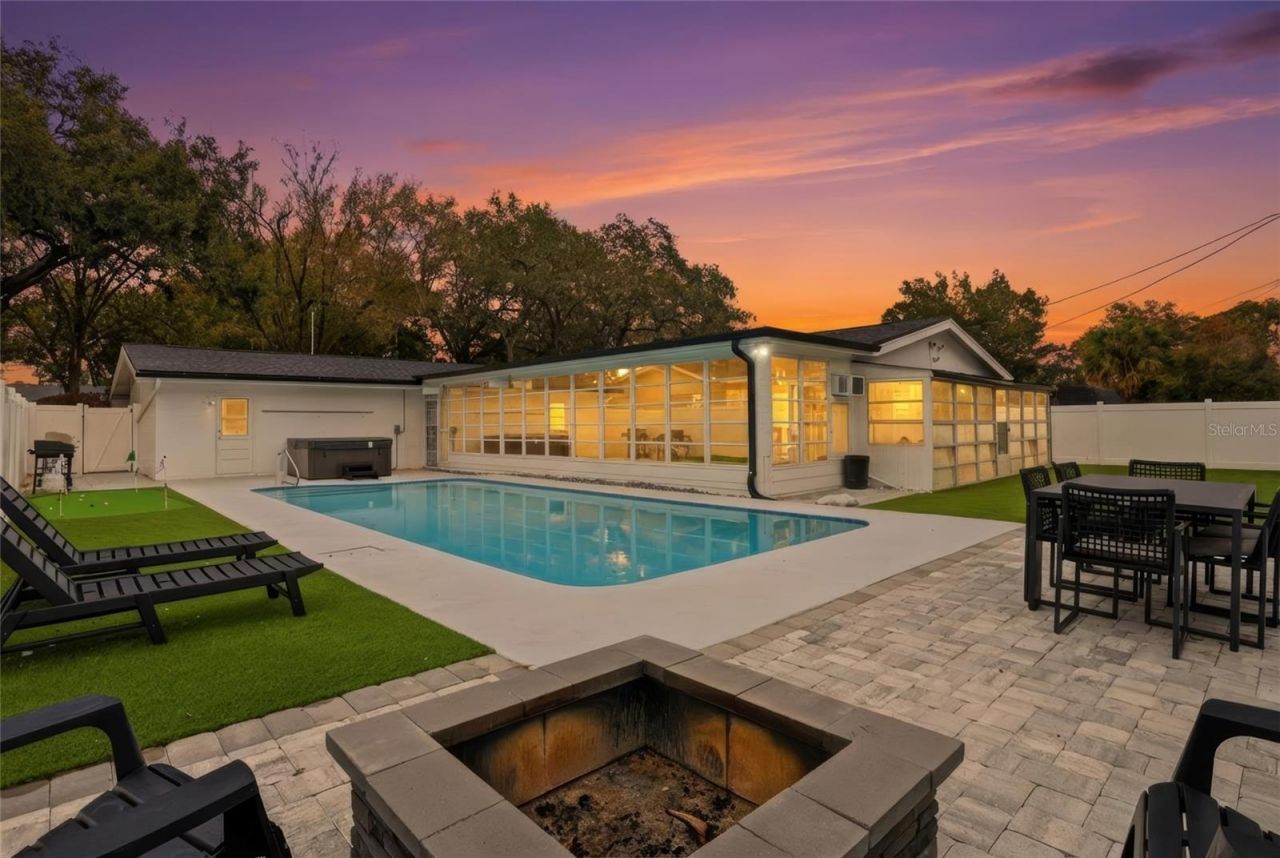Conveniently located in the established subdivision of English Estates, this updated and upgraded 4 bed, 2 Bath pool home is sure to please. From the moment you drive down the tree lined street you will sense the pride in this charming neighborhood. Come home and relax in the fully fenced in back yard that was transformed into a personal outdoor haven complete with a sparkling 33 x 13.5 ft pool, freshly painted pool deck, new pool pump, recently installed artificial green spaces/ dog run, stone pavers, fire pit, hot tub and golf putting green. Whether you're relaxing by yourself or entertaining guest for a BBQ this outdoor oasis is in a class above the rest. Inside you will immediately be greeted by a transitional modern foyer highlighted by exposed brick with visible mortar joints; stunning. New energy efficient windows were installed throughout as well as tasteful LVP flooring. The living floor-plan has very functional spaces, so no guessing where everything goes. Those rooms include a living room, family room, kitchen, and off kitchen dining area. The kitchen was fully renovated recently with plumbing, shaker style cabinets, quarts counter tops, appliances and a backsplash. The kitchen also boast a dry bar for versatility. The family room is highlighted by high ceilings, a custom wood accent wall that really draws all eyes to it, 2 ceiling fans, sky lights, and the perfect amount of natural light coming through the French doors leading to the patio. The living room is a perfect spot for some extra couches and chairs and a coffee table. Ideal for hosting additional guest, reading a book, etc. The master quarters is the largest bedroom in the home and has high ceilings, double French door to the Florida room, 2 closets (1 walk in and one built in), ensuite bathroom, dual sink stone counter top vanity, separate make-up vanity with stone countertop, and a walk in shower. Bedroom 2, 3, and 4 gives homeowners many possibilities of their choosing. Bathroom 2 boast a bath with shower head, dual sink vanity, and extra storage cabinets. Transitioning between the main home and the outdoor retreat you will find a long versatile 40 x 10 Florida room under air (wall unit) that is completely covered, enclosed, new luxury laminate flooring, and complete with all new windows. An additional storage area was built for the pool equipment and outdoor necessities. Major system updates are as follows: Roof: 2021. HVAC: 2015 Plumbing: Partially re-plumbed in 2022. Electrical: New panel added in 2022 (in addition to the older one). English Estates is a very popular and convenient location close to a lot of popular areas. Commute quickly to areas such as Winter Park, Baldwin Park, Audubon Park, Oviedo, Casselberry, Altamonte Springs, Full Sail University, UCF, I-4, 417, 429, Shopping, restaurants, and more. A hidden gem in the area is Kewannee Park; home to Kewannee trail a 1.9 mile paved 2 lane loop. Amenities include a basketball court, pond, pier, and playground. Schedule your showing today before it's too late. Don't let this home pass you by.
