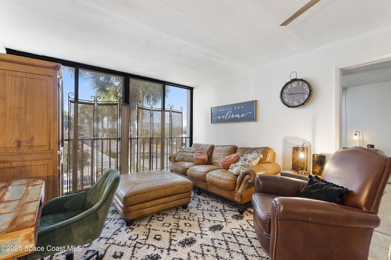 Step into a prime investment opportunity with this beautifully maintained, fully furnished 2 bedroom, 2 bath end unit condo, ideally positioned on the second floor of a secure, gated RIVERFRONT community. This B building unit is 882 SF, has floor to ceiling windows with incredible southern views of the river and the community pool. This unit has abundant natural light and enhanced privacy, making it highly desirable for both short term rental income and personal use. Located across from Titus Landing, the post office and great local restaurants and you have front row seats to watch the rocket launches! With no furnishings needed, this turnkey property allows you to start generating returns right away. Whether youre considering it as a second home, a seasonal retreat, or a cash-flowing vacation rental (1 month minimum stay required), this property delivers flexibility and strong potential. Assessments have been paid in full.