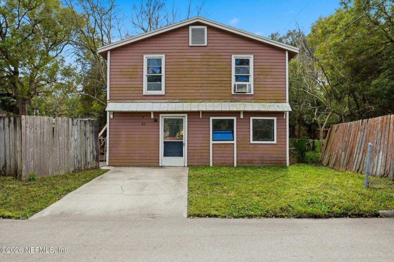 Value-add multifamily opportunity just minutes from historic downtown St. Augustine, zoned multifamily and offering multiple structures with strong redevelopment and income potential. The property consists of three buildings situated on a large yard, making it ideal for investors, developers, or owner-operators seeking a full rehab and repositioning project.The main residence is a single-family home featuring two bedrooms and one bathroom, with plumbing already in place for a second bathroom. The home is equipped with central A/C approximately three years old. Additional improvements are required throughout.A detached garage with a loft above provides additional flexibility for storage, future conversion, or supplemental income, subject to buyer verification. The property also includes a duplex with one upstairs unit and one downstairs unit, each configured as two-bedroom, one-bath units and equipped with separate electric meters, offering the potential for additional rental income once renovated.The property's location, unit mix, and multifamily zoning present strong long-term upside for rental, redevelopment, or resale.Property is being sold as-is.Seller has never occupied the property and has no personal knowledge of the property's condition. Buyer to conduct all inspections and due diligence.