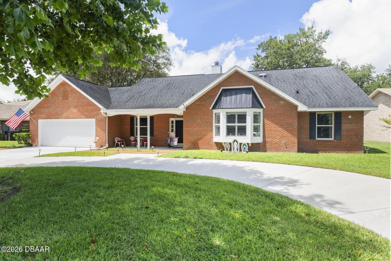 Experience the best of Florida living in this move-in ready, beautifully updated pool home, nestled within the prestigious Estate Homes section of Breakaway Trails"one of Ormond Beach's most sought-after 24-hour guard-gated private communities.Drive up to this stunning brick home featuring a circular driveway and an easy-to-maintain, fully fenced yard with thoughtful plantings, creating a peaceful and serene setting. Inside, you'll find 3 bedrooms, 2.5 bathrooms, and 2,370 square feet of thoughtfully designed living space filled with comfort, style, and elegant upgrades throughout.In the heart of the home is the bright, inviting kitchen, offering abundant cabinetry with convenient pull-out storage, a functional peninsula perfect for casual dining or entertaining, and sun tunnels that fill the space with natural light. Plantation shutters add timeless charm and sophistication across the home.The living areas flow seamlessly, highlighted by a refaced wood-burning fireplace that creates a warm and welcoming focal point. French doors lead you outside to your private outdoor oasisan oversized screened lanai complete with custom sun shades, ideal for relaxing or hosting guests year-round.Step into the sparkling solar-heated pool with gas heated spa, perfect for enjoying Florida's sunshine in total privacy. The spa-like primary suite offers a true retreat, featuring a luxurious soaking tub and a walk-in shower designed for relaxation.With a newer roof, thoughtful updates throughout, and rare bonus storage with an attached shed, this home truly checks every box.Breakaway Trails is known for its exceptional amenities, family-friendly atmosphere, and unbeatable locationjust minutes from the Atlantic Ocean beaches, top-rated schools, shopping, dining, and medical facilities. Whether you're looking for an upscale family home or a peaceful retreat, this property delivers the perfect blend of privacy, convenience, and resort-style living.