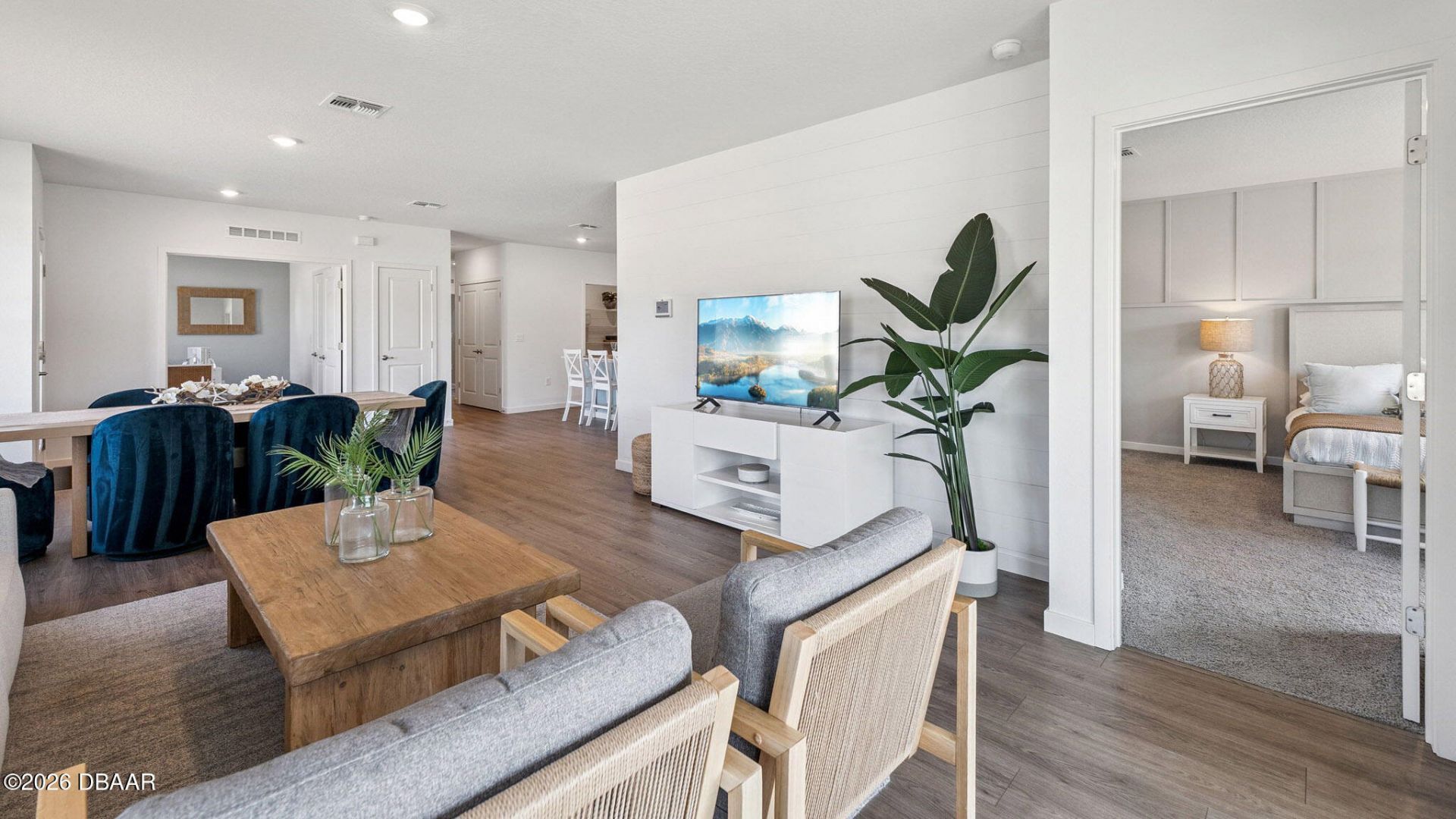 Halifax Plantation presents the Carrington. This beautifully designed 1,564 sq. ft. villa offers the perfect blend of comfort, flexibility, and modern open concept living. Featuring 3 bedrooms, 2 bathrooms and a 2-car garage, this home lives large while maintaining an efficient, thoughtfully planned layout.At the heart of the home, the expansive great room seamlessly connects to the kitchen and dining area, creating an ideal space for entertaining or everyday living. The kitchen is well-appointed with a pantry, generous Quartz counter space, and convenient flow to the dining room-perfect for hosting family gatherings or casual dinners. The private primary suite serves as a true retreat, complete with a spacious walk-in closet and an en-suite bath. A well-sized secondary and third bedroom and full bath provide comfort for guests. Step outside to the covered lanai, ideal for enjoying Florida mornings or unwinding in the evening. *Photos are of similar model but not that of exact house. Pictures, photographs, colors, features, and sizes are for illustration purposes only and will vary from the homes as built. Home and community information including pricing, included features, terms, availability and amenities are subject to change and prior sale at any time without notice or obligation. Please note that no representations or warranties are made regarding school districts or school assignments; you should conduct your own investigation regarding current and future schools and school boundaries.*