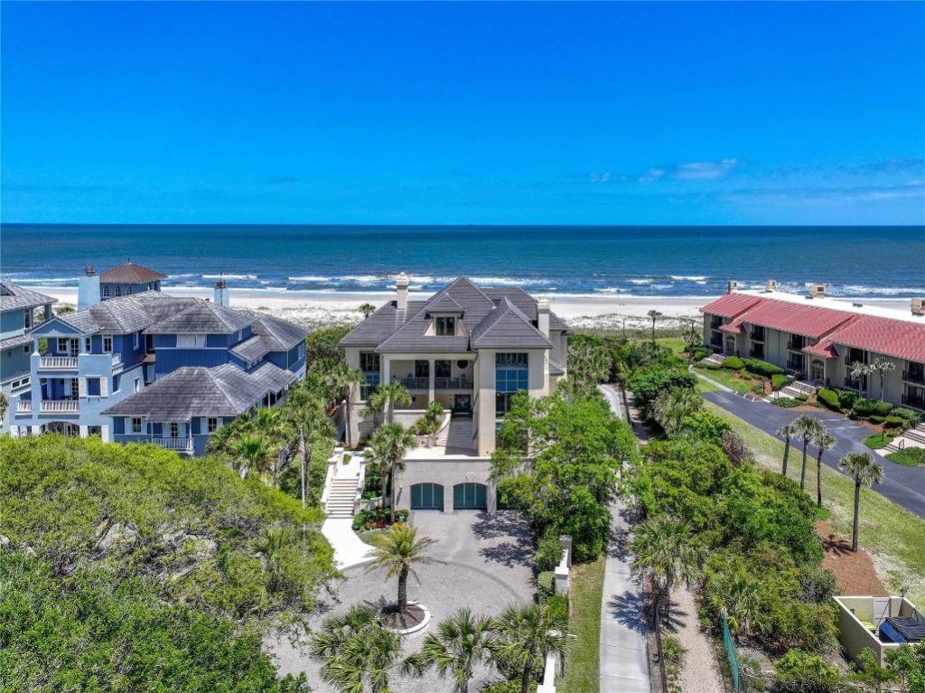 This once-in-a-generation oceanfront estate could be your next legacy property! Located in the premier, secondary-gated enclave at the southernmost end of Amelia Island Plantation, this exclusive street is home to only eight residences uniquely positioned to capture panoramic ocean vistas and views of the scenic 15th hole of the private Long Point Golf Course. Situated behind three security gates? AIP, Dunes Row, and a private driveway?properties here rarely become available, making this a truly exceptional opportunity in arguably the most tranquil and beautiful setting of the island. Spanning 9,864 sqft across two oceanfront lots totaling .60 acres, this remarkable David Beer?designed estate was custom-built by the original owners as a spacious family retreat. It has remained in the hands of its original owners since completion and has never before been offered for sale. Engineered for strength and longevity, it rests on concrete foundation with pilings 25 feet deep, with a hurricane-rated concrete tile roof, windows, and doors providing exceptional durability. A new, efficient, well-supplied geothermal HVAC system (2024)?with no outside condensers?offers superior energy efficiency, complemented by a well-fed irrigation system, generator, and a private elevator allows you to glide effortlessly between levels as the elevator quickly whisks you to every other floor. The residence, located in Flood Zone X, features 8 bedrooms and 8.5 bathrooms, along with a sparkling salt-and-chlorine heated pool, ranging from 3 to 10 feet in depth, and a spa?perfect for both relaxation and entertaining. Come discover one of the most private and prestigious oceanfront offerings ever to grace the southern tip of Amelia Island Plantation.
