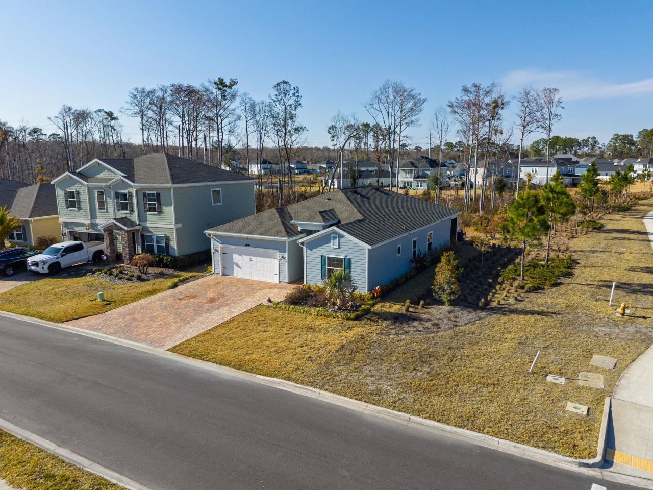 Make sure to check out the Virtual Tour for a 3D Model w/ Walkthrough, Floor Plan w/ Measurements, Video, & more! Step inside this 2022 Lennar build located in the Trailmark Community offering 4 bedrooms, 3 bathrooms, a 2-car garage, and 2,025 square feet of thoughtfully designed living space, 2,643 under roof, and feel the difference the moment you pass through the oversized foyer. Wood-look tile pulls you forward, running seamlessly through the home like it???s giving you the grand tour. The split bedroom layout understands that togetherness is great and privacy is priceless. A true guest wing with two bedrooms and a full bath keeps visitors comfortable while preserving quiet in the rest of the house. High flat ceilings throughout the home adds volume, and smart details like the inside laundry room and extra closets exactly where you need them make everyday living feel effortless. Upgraded R15 insulation, along with an insulated garage, adds comfort and efficiency behind the scenes. Front and center, the living room, dining space, and kitchen come together in an open concept featuring quartz countertops, stainless steel appliances, and a gas range that handles movie night, holidays, and random Tuesday pizza night with equal ease. The owner???s suite is the kind of retreat that makes hitting snooze tempting. HUGE dual walk-in closets mean you might finally win the storage battle (in an effort to save costs Lennar stopped doing these and reduced the number of windows in the home on the newer versions of this floor plan), and the spa-inspired bathroom turns rushed mornings into a calmer start. Outside, the upgrades keep coming. An extended brick paver patio is ready for grilling, relaxing, and pretending you???re going to start hosting more often. The paver driveway delivers that polished first impression that quietly says, yes, this one is special. Even better, this floor plan is no longer available from the builder, so you get the perks of new construction without the timeline, decisions, or surprise delays! Life in Trailmark means resort-style amenities just minutes away, from pools and fitness areas to trails, parks, and kayaking along Six Mile Creek. When it???s time to head out, Interstate 95 is close for an easy run to Jacksonville or a quick trip south to historic St. Augustine, about 15 miles away, packed with restaurants, shopping, and charm. Jacksonville International Airport is roughly a 45-minute drive, and daily conveniences, groceries, and local favorites are under 10 minutes from the front door. This is more than a house, it???s a lifestyle upgrade with a head start. Homes like this have a way of getting claimed quickly, so make your move before someone else is already unpacking!
