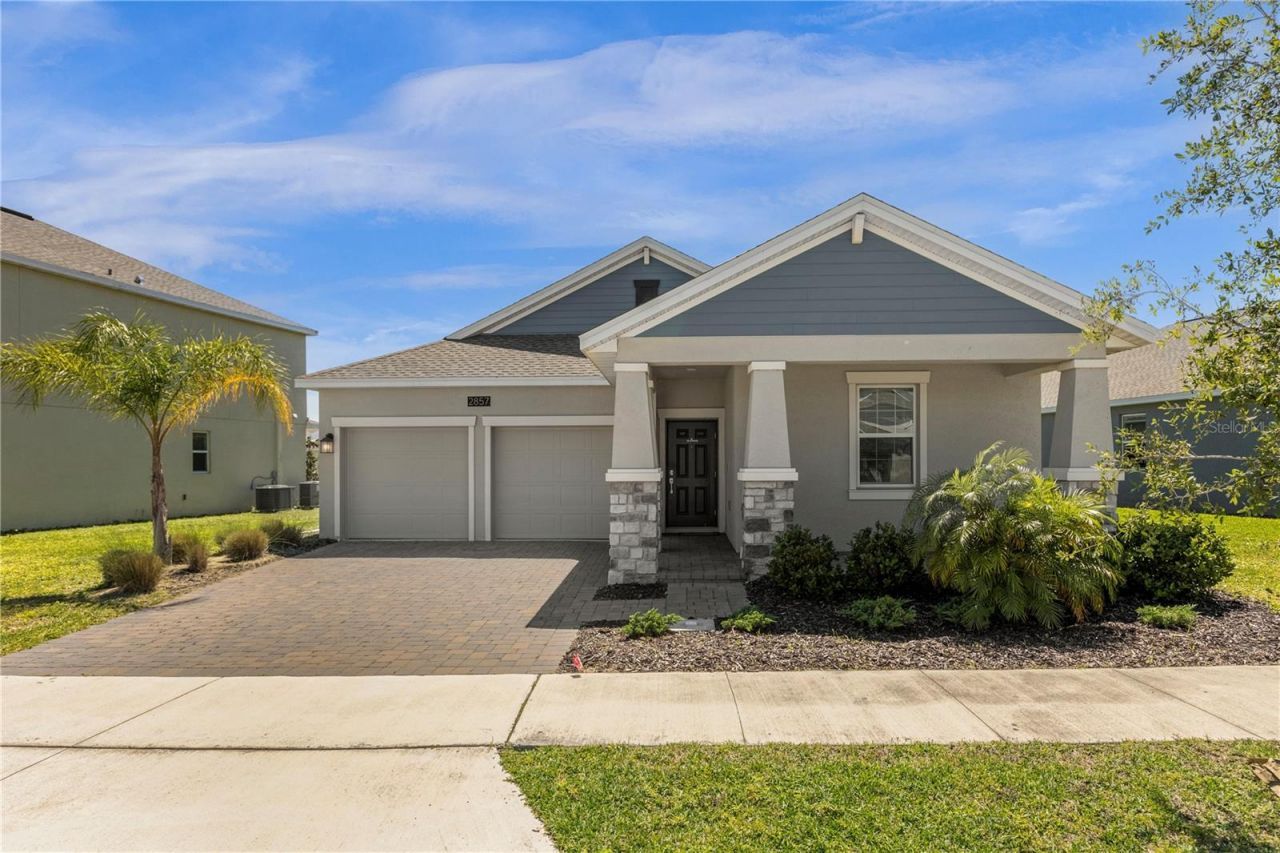No need to look any further the Eastham II has it all! This dream home offers four bedrooms, three bathrooms, and a two car garage. The covered front porch leads into the welcoming foyer where you can greet your guests. The screened back porch has great water view and sunset view! The kitchen features an island with a double sink and a dining room. The family room overlooks the spacious covered patio and can be accessed through the dining room. The elegant owner bathroom offers a walk-in shower, bathtub, and double sinks. There is also an expansive owner closet that can be accessed from the bathroom. The spacious floor plan offers all the space your family will need. Solar panel is on lease which can be tranferred to the new owner. Hanover Lakes is a much sought after waterfront community. Perfect for boating, fishing and enjoying nature. Amenities to include: Dock and lift to the Chain of Lakes, Splash Park, Resort Style Swimming Pool and Cabana. Hanover Lakes' also has a great location. Minutes away from the Florida Turnpike with tons of shopping and dining options such as Harmony Farmers Market, it is convenient to get anywhere you need. Your family will love living and creating memories together at Hanover Lakes.