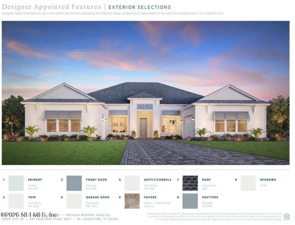 This single family home located at 297 Heritage Pines Way, Saint Augustine, FL 32092 is currently listed for sale with an asking price of $1,085,000. This property was built in 2025 and has 5 bedrooms and 5 full and 1 partial baths with 3749 sq. ft. Heritage Pines Way is located in the Silverleaf subdivision. Search Silverleaf real estate on www.watsonrealtycorp.com today.