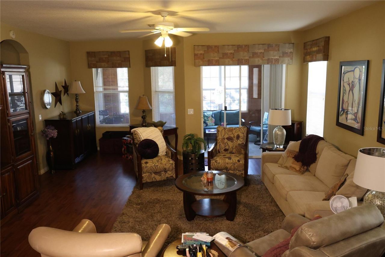 A very spacious turnkey Move in ready villa with 2054 SQFT that flows seamlessly into a large family room with two very large bedrooms and a potential third bedroom or an office. This villa has Laminate flooring throughout the great room, owner's suite and office. The owner's suite has a very large walk-in closet with many additional shelves. you have access to the air-conditioned lanai from your bedroom. This home boasts an upgraded kitchen that is fitted with maple cabinets and granite counter with under cabinet lighting. All appliances are stainless steel. For additional comfort Relax year-round in your enclosed air-conditioned lanai. The wall mounted TV conveys. Your attached two car garage is fitted with many storage racks. In this sought-after gated community of Lettingwell you can relax even more because the landscaping is done weekly by the HOA and also the exterior painting every 6-7 years. All schools are A rated and is a very short distance away. The clubhouse is across the street. Here you'll find lighted tennis, pickle ball and basketball courts, a very large pool, a well-equipped gym, library and an entertainment room for private events. There're many restaurants, cinemas, Ice skating arena, entertainment and shopping close by. The Shoppes of wiregrass, The Grove and the Premium outlets are a few miles away. There are three major hospitals, and many clinics that are all very close. The main highways I-75 and I-275 are only 5 miles away and a 35-45-minute drive to downtown Tampa, Tampa international airport and cruise port terminals.