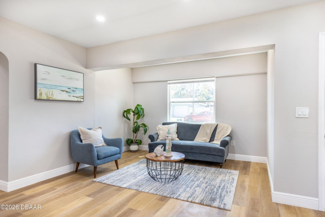 Look no further - this is the one! No HOA! Updated 3BR/1BA with open-concept floor plan. Features a brand-new kitchen with modern cabinets, quartz countertops, stylish backsplash, and stainless steel appliances. Water-resistant laminate flooring throughout, renovated bathroom, new light fixtures, new water heater, and brand-new A/C system. Fresh interior and exterior paint. Conveniently located minutes from Dunlawton Sugar Mill Gardens, the Halifax River, and Daytona Beach. Move-in ready - don't miss it!