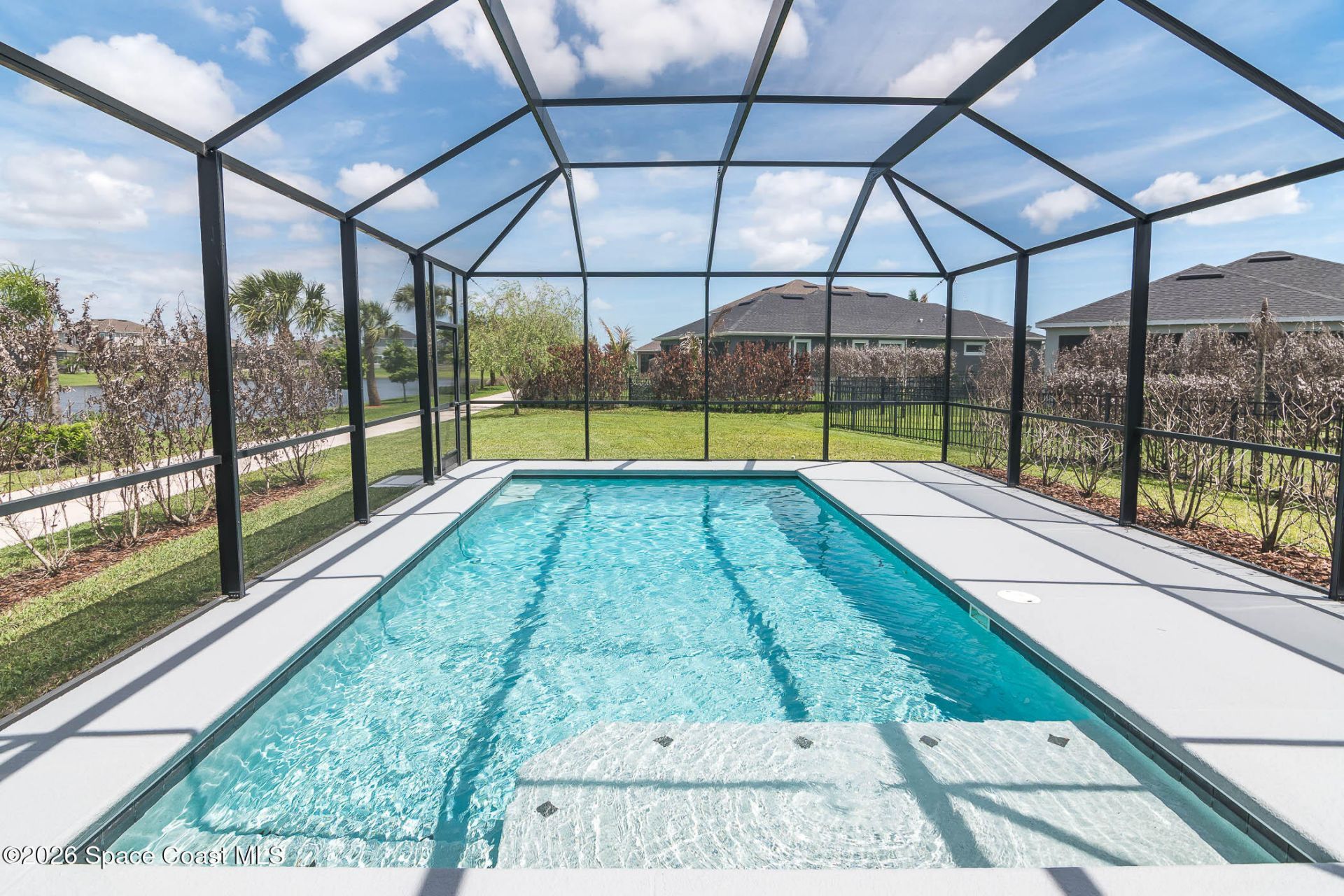 Stunning 2021-built pool home on a quiet cul-de-sac offering the ultimate luxury lifestyle! This gorgeous retreat features lake views, a screened saltwater pool & large covered lanai. Inside, light wood-look tile flows throughout a bright, open floor plan w/ sleek upgraded fixtures. The great room opens seamlessly to the outdoors, complemented by a dining room, breakfast nook & seating area. The pristine white kitchen boasts upgraded SS appliances, artisan tile backsplash, walk-in pantry, double-oven range & French-door fridge w/ middle drawer & bottom freezer. Half bath completes the downstairs. Upstairs, the primary suite features 4 large windows w/ lake views, his & her walk-in closets w/ organizers & a spa-like bath w/ elegant encaustic tile and sophisticated hardware. A private guest ensuite w/ walk-in closet and two bedrooms sharing a dual-vanity bath round out the second floor. EV charger included. Within A-rated schools & just 15 min. to the beach--near everyday conveniences!