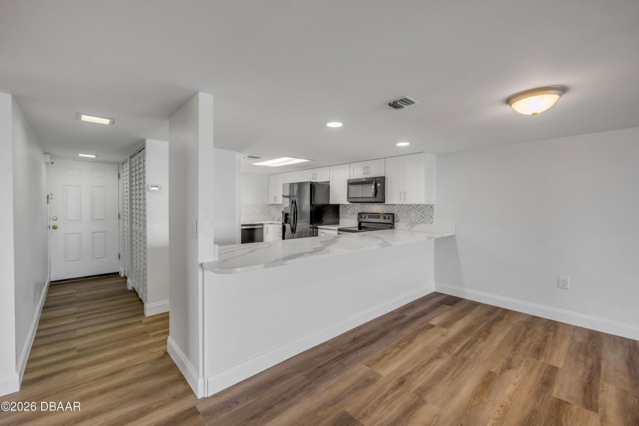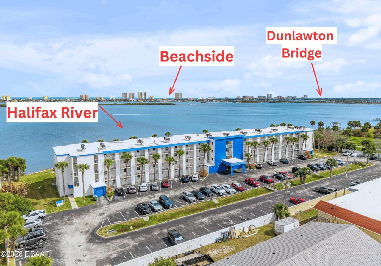 Welcome to this unique top floor corner riverfront condo offering privacy and breathtaking views of the Halifax River. This renovated unit features luxury vinyl plank flooring throughout, creating a seamless and modern feel. The kitchen is thoughtfully designed with a pantry, giving this condo extra function and storage that truly packs a punch.Enjoy the convenience of an inside washer and dryer, plus additional storage space right on your private balcony. Step outside to take in peaceful river views, start your mornings with coffee at sunrise, and unwind in the evenings with the coastal breeze by the pool.The building offers a secured lobby and elevator access, along with resort style amenities including a pool and fitness center. The association covers water, sewer, trash, pest control, and common area maintenance, making for easy living. The AC was replaced in 2022 and the water heater in 2016.Located just minutes from restaurants, World's most famous beach, and I 95, this condo offers both tranquility and convenience. Move in ready and perfectly positioned, this riverfront retreat is ready to welcome you home.All information is deemed accurate but not guaranteed.
