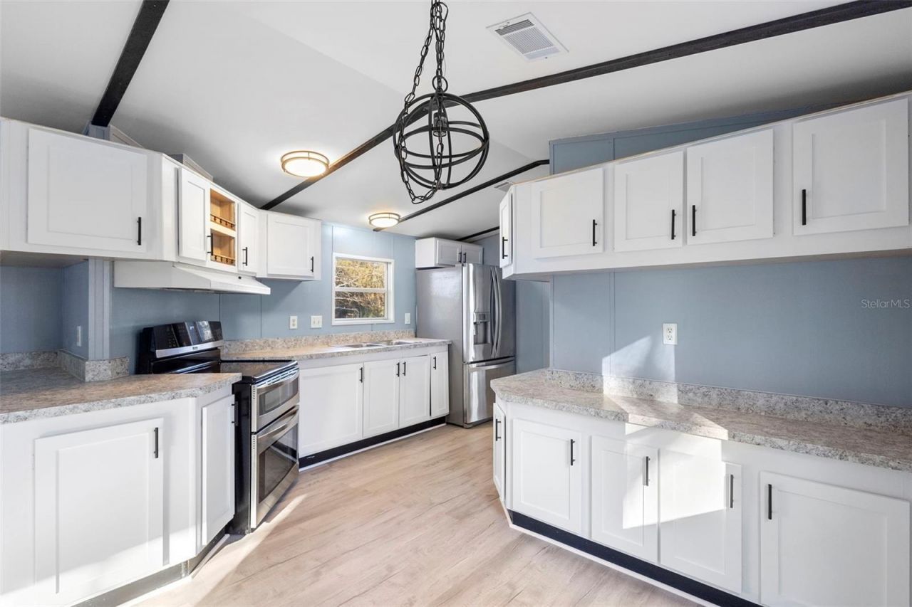 New home feel without the price tag! Country living 10-15 minutes from Downtown Deland! Need help with closing costs? Our seller has your back! Enjoy this newly renovated 2-bedroom, 2-bath, single-wide manufactured home in Lake County. The home features a split bedroom layout that offers comfort and privacy for everyday living. As you enter, you will see the new laminate flooring throughout, in addition to new kitchen cabinets and appliances. Just off the kitchen, is your own separate laundry room. The primary bedroom has space-saving built-in closets and dresser drawers. French doors open up to your own BRAND-NEW FULL EN-SUITE. Your second bedroom and updated bath are at the other end of the home, keeping the privacy for any extended family or guests. This property is fully fenced for pet lovers and offers MASSIVE front and rear porches, perfect for either morning downtime or grilling out back. The back yard includes a shed, convenient for any outdoor equipment and additional storage space. If you're looking for country vibes, but still close enough to town or major highways, this home is waiting for you. FHA and Conventional financing available.