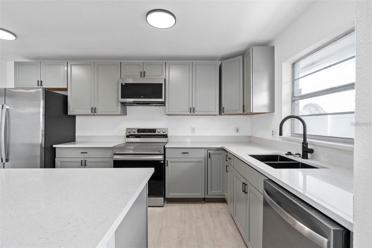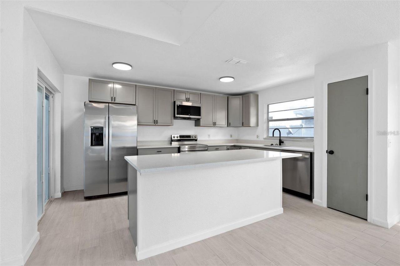 One or more photo(s) has been virtually staged. Fully renovated from top to bottom, this is the largest home in the community, situated on a premium lakefront lot with open views and a peaceful setting. The entire home features new ceramic tile flooring throughout, creating a modern and cohesive design. The open concept layout highlights a completely remodeled kitchen with new cabinets, a central island, contemporary finishes, and new appliances, ideal for everyday living and entertaining. Both bathrooms have been fully updated with floor to ceiling ceramic tile, new vanities, and modern fixtures. Sliding glass doors lead to a spacious enclosed back porch filled with windows, offering abundant natural light and direct lake views. This versatile space can be used as a gym, study room, home office, or flex space to fit your needs. Additional upgrades include a new roof, new air conditioning system, new water heater, and fresh interior and exterior paint. The community features a voluntary HOA. Buyers are encouraged to verify rental options, association details, and amenity access independently. Amenities may include tennis courts, pool, soccer area, and playground. Enjoy added privacy with no rear neighbors and no homes directly across the water.