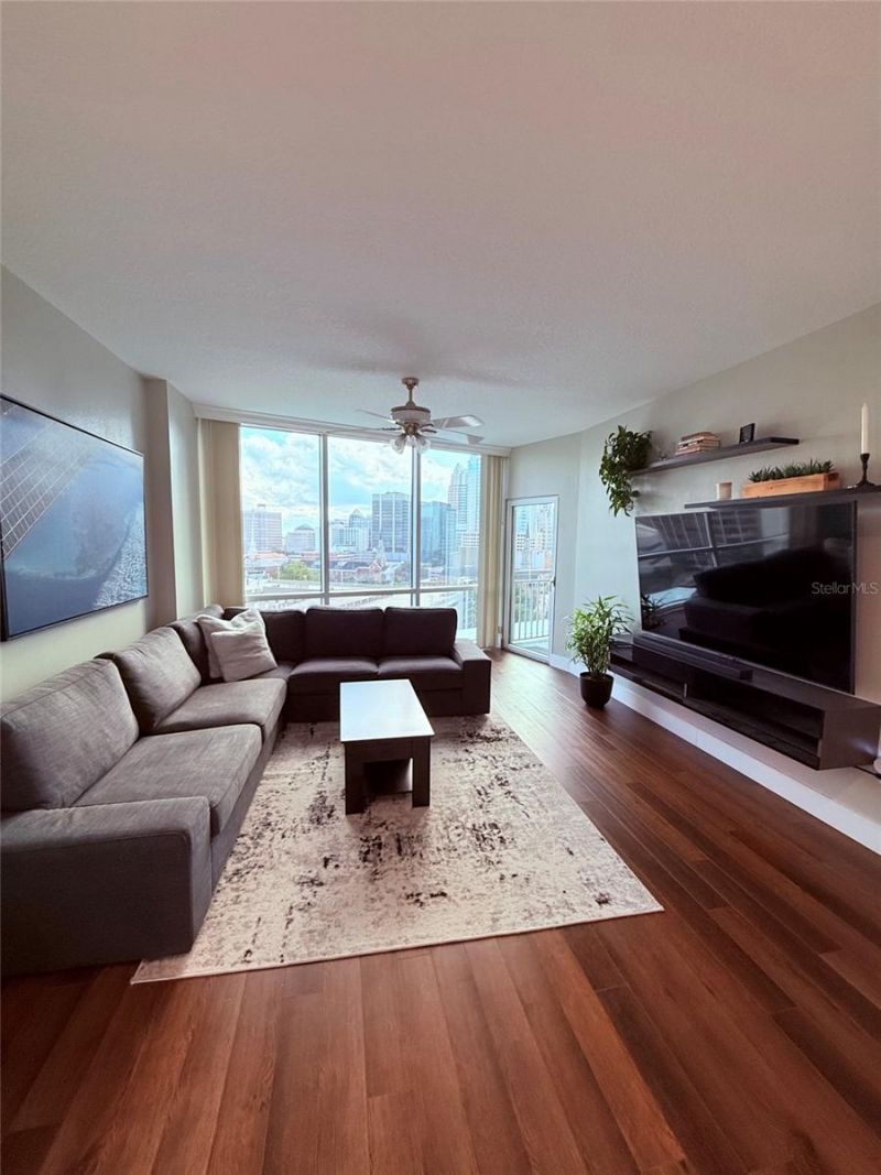 Skyline views? Check. Fireworks? Check. Publix across the street? Double check. Perched on the 12th floor of one of Orlando's most iconic high-rises, this fully renovated 2-bedroom, 2-bath condo offers a lifestyle that blends luxury, convenience, and unforgettable views. The Waverly's unbeatable location puts you right between the buzz of Church Street and the relaxed vibe of Thornton Park - with Lake Eola quite literally in your front yard. Publix is across the street, and dining, shopping, and nightlife are all within steps of your door. Inside, the home features an open-concept kitchen with quartz countertops, sleek cabinetry, and brand-new stainless steel appliances. Vinyl wood flooring runs throughout, creating a modern, low-maintenance finish. Floor-to-ceiling windows flood the living room and primary suite with natural light and sweeping skyline views, while the en-suite bath and generous walk-in closet add comfort and function. A second bedroom and full bath make the space perfect for guests, a home office, or flex living. Step onto your private balcony to take in the city lights - and even Disney fireworks in the distance. The Waverly delivers resort-style amenities, including a sparkling pool and spa with cabanas, a fitness and business center, grilling stations, concierge service, a 24-hour doorman, and secure assigned parking. Impeccably maintained and vibrant, this building is known for its friendly community and unbeatable energy.