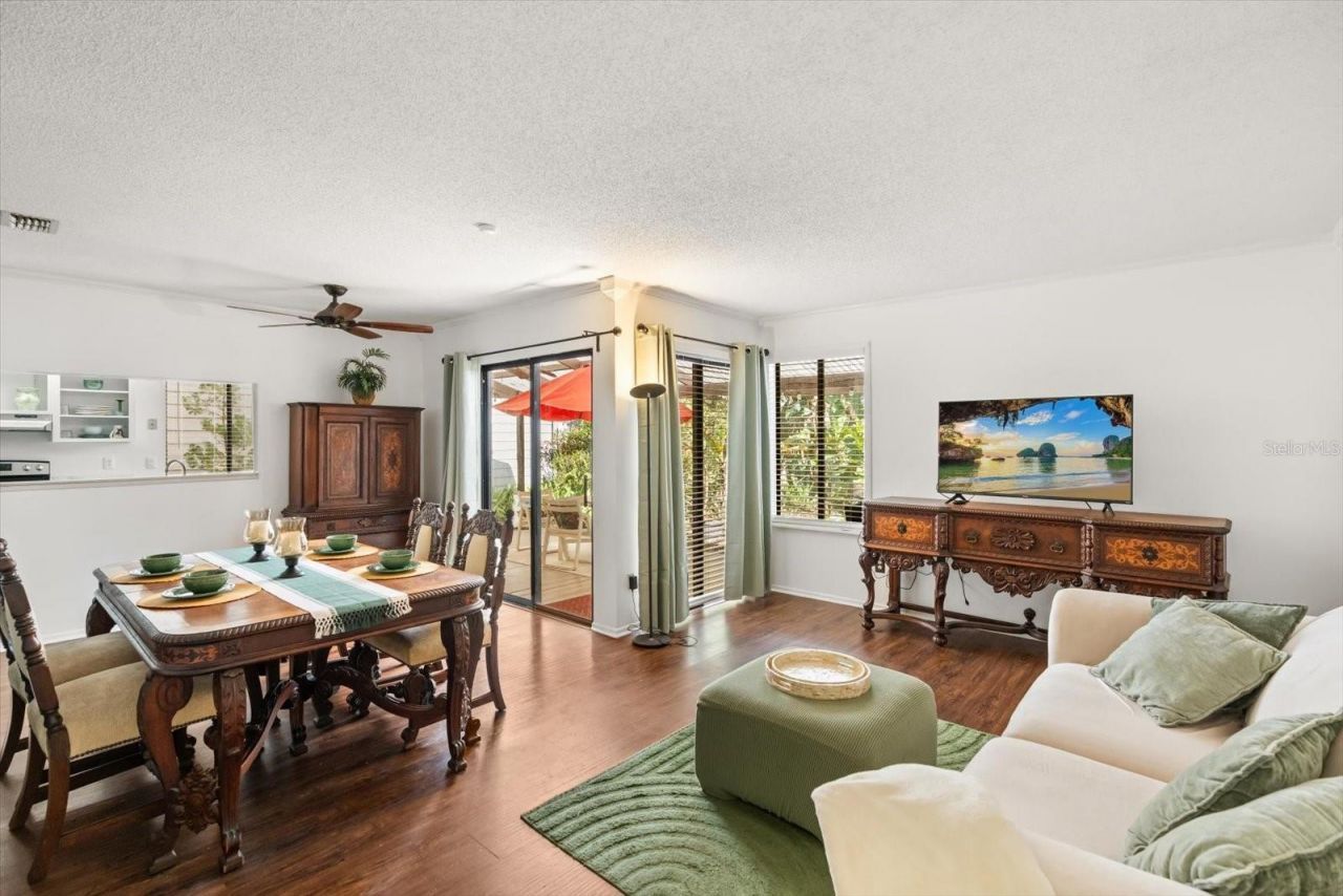 Warm and inviting home located in the highly sought-after Highland Village community of Winter Springs-where residents love to live and rarely want to leave. This 2-bedroom, 2-bath home features an open floor plan, abundant natural light, and no carpet throughout. The spacious living and dining areas open a comfortable layout, perfect for everyday living or entertaining. The primary bedroom is generously sized with a large walk-in closet, and the primary bathroom has been updated with a sink, faucet and mirror. The secondary bedroom is also well-sized and versatile. The guest bathroom has been updated with a new vanity and mirror. The kitchen offers ample storage, includes all appliances, and opens directly to the private backyard-complete with a covered patio and ceiling fan, ideal for relaxing outdoors. Seller has recently updated the following: replace all interior doors, all new faux window blinds for all windows and crown molding in living areas. All appliances will stay including the washer and dryer! Enjoy living in a vibrant, well-maintained community with top-rated schools and fantastic amenities including a pool, tennis and pickleball courts, volleyball court, playground, and scenic walking trails and low HOA costs. Conveniently located near SR 434 and Tuskawilla Road, just minutes from Winter Springs Town Center, shopping, dining, and a short walk to Torcaso Park. Schedule your private showing today.