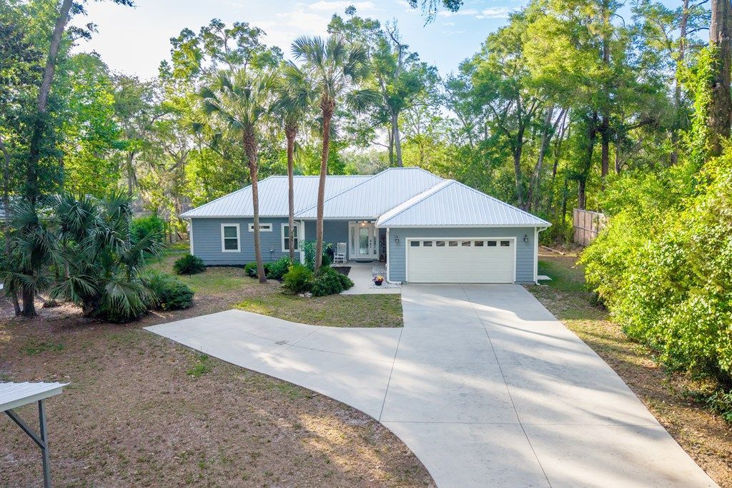 Suwannee River -This high quality custom-built 3 bedroom, 2 bath riverfront home with a 2-car garage, offers 1,538 square feet of living space and 100 feet of frontage on a deeper section of the river. This well-maintained property provides excellent water access with the ability to boat all the way to the Gulf, delivering the privacy, setting, and lifestyle that make North Florida waterfront living so desirable. From the moment you enter, your eyes are drawn to the beauty of the river life with 8-foot slider doors and open views. Youll find a functional open layout designed for comfortable, everyday living. The kitchen features custom cabinetry, granite countertops, stainless steel appliances, a large walk-in pantry and flows seamlessly into the main living area with high vaulted ceilings, crown molding, built in electric fireplace, an abundance of natural light and views of the river. The split floor plan provides added privacy, with a comfortable spacious primary suite boasting his and hers closets and a well-appointed bathroom featuring a walk-in shower and vanity area. The home also includes 36-inch doorways, offering wheelchair accessibility throughout, along with an energy-efficient design for added comfort. Step out back onto a large, covered porch with 9-foot ceilings overlooking the riverperfect for relaxing, entertaining, or taking in the peaceful surroundings. A direct path leads to the water where youll find your private dock complete with two jet ski lifts, mature trees, and a natural, private setting. Ample parking provides space for vehicles, boats, and guests. In addition, the property includes a 1,200+ square ft workshop/garage with carport, 220-volt outlet and offers plenty of room for storage, projects, or equipment. Located in the highly sought-after Rock Bluff area, this property is just 1/4 mile from a public road and nearby boat ramp, while also being close to multiple natural springsoffering both convenience and access to North Floridas natural beauty. The lushly landscaped 0.59-acre yard is fenced and features a gated entry, providing both privacy and security. With direct access to the Gulf, its perfectly suited for full-time living or a relaxing weekend retreat. This home sits high and dry, is not located in a flood zone, and has no history of flooding. Call today and lets take a look!