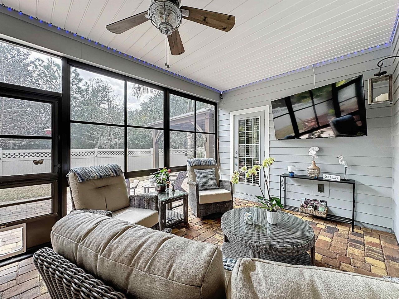 MOVE-IN READY in Desirable Arbor Mill â?? NO CDD Fees! Welcome to this impeccably maintained 4-bdrm, 2-bath home in the sought-after Arbor Mill community which offers 2,268 square feet of thoughtfully designed open-concept living space filled with upscale finishes and modern comforts. Elegant wood-plank tile flooring, designer lighting, and seamless flow ideal for both everyday living and entertaining. A gourmet kitchen...featuring quartz countertops, stone backsplash, stainless steel appliances, and a large island perfect for gathering and entertaining. The split floor plan provides privacy and flexibility. This spacious primary suite is a true retreat, highlighted by a tray ceiling, large walk-in closet, and a spa-inspired bathroom complete with dual vanities, soaking tub, and separate shower. Bedrooms 2 and 3 are separated by a full bath, while the 4th bedroom, currently used as an exercise room, offers a flex space for an office/bonus rm. Sliding glass doors lead to a 209sf private oasis... screen/vinyl-enclosed, heated and cooled Lanai, extending to a beautifully designed paver patio with built-in fire pit and Pergola w/ hot tub â?? perfect for relaxing evenings or weekend gatherings. Additional exterior upgrades include gemstone lighting, a paver driveway, and a fully fenced backyard. This community offers amazing amenities, including clubhouse, pool, playground, sports field, dog park/walk area, and more...