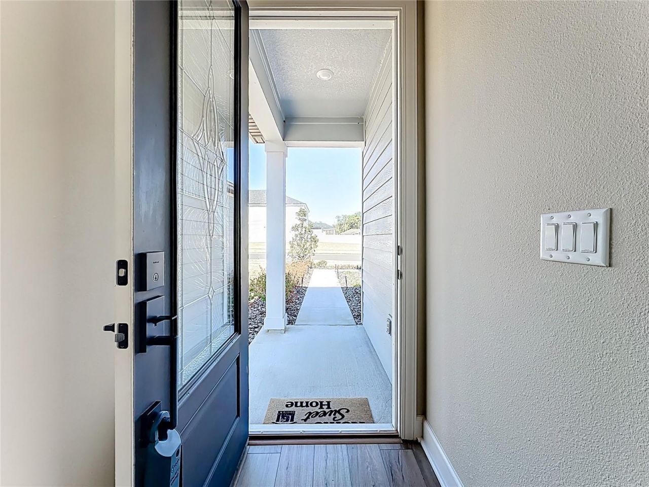 Welcome to the Sunnyside at Jennings Farm - a beautifully designed 2024 new construction home located within a desirable gated community. Offering true ground-level living, soaring high ceilings at entry, and a back patio, this home delivers comfort, style, and modern convenience from the moment you arrive.This thoughtfully crafted residence features three spacious bedrooms, two full bathrooms, and a two-car garage across 1,217 square feet of well-planned living space. The split floor plan provides exceptional privacy, with the secluded owner's suite set apart from the additional bedrooms-ideal for families, guests, or a home office.The open-concept layout highlights a spacious family room and a chef-ready kitchen complete with granite countertops, 42-inch cabinetry, and a modern gas range, seamlessly connecting to a charming breakfast area for everyday living and entertaining. The main living areas feature vinyl flooring, while the bedrooms are finished with comfortable carpet. A tankless water heater ensures endless hot water and energy efficiency.Step outside to the patio-perfect for relaxing evenings or weekend gatherings. Residents enjoy community amenities including a dog park, pool, pickleball courts, and a playground, enhancing both lifestyle and recreation.Conveniently located near Middleburg High School, Ascension St. Vincent's Clay County - Middleburg's nearest hospital with emergency services and full medical care, Publix, and nearby shopping, this community offers the ideal balance of tranquility and accessibility. Whether you are searching for a primary residence or an investment opportunity, this move-in-ready home delivers quality, comfort, and long-term value.Schedule your private showing today and experience the lifestyle the Sunnyside at Jennings Farm has to offer.All information provided is deemed reliable but not guaranteed.