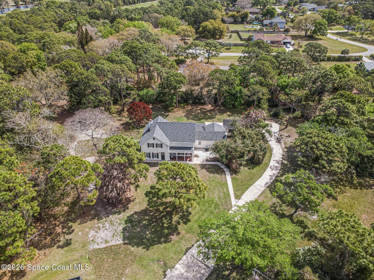 Welcome to your private slice of country living in Grant-Valkaria. Nestled on 1.16+ acres, this spacious 4-bedroom, 3.5-bath two-story home blends peaceful rural charm with everyday comfort. The inviting layout features a formal living room, formal dining room, and family room with a cozy wood-burning fireplace. A newly renovated kitchen includes a breakfast bar, pantry, and breakfast nook for casual dining. First floor newly renovated mother-in-law suite with its own private entrance. Spacious master and two additional bedrooms upstairs provide flexibility for family, or a home office. The property is dotted with mature fruit trees, creating a serene, park-like setting. Enjoy Florida evenings on the enclosed trussed porch. A workshop with electricity and attached two-car garage provide great space for projects or storage. Located in desirable Pomello Ranch, this property allows horses while being minutes from shopping, and major roadways. Space, privacy, and convenience all in one.