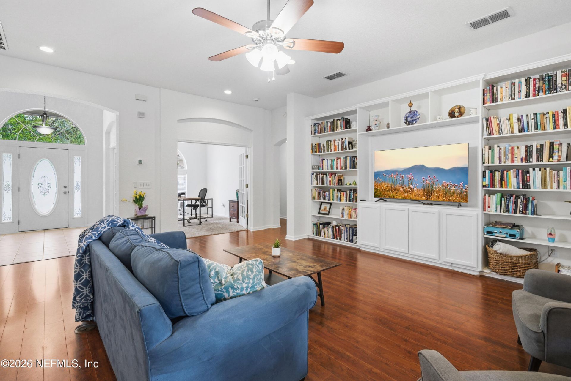 Stunning Single-Story Oasis in Pine Chase of Julington Creek Plantation. From the moment you step inside this home, you're greeted by an open, light-filled floor plan designed for both everyday living and effortless entertaining. The heart of the home is the stunning gourmet kitchen, featuring granite countertops, stainless appliances, ample rich wood cabinets, breakfast nook, and a pantry. The built-in book shelves compliment the high ceilings in the open concept living area. A wall of large picture windows let in natural light from the screened porch creating warmth and tranquility. The primary bedroom and ensuite located off the kitchen includes a sitting area. The expansive bathroom with soaking tub is a perfect spot for an at home Spa Day!Two of the bedrooms share a bathroom with seperate sinks and the fourth bedroom accesses the guest bathroom. Home office/flex space, three car garage and new roof in 2022 make this one a must see! Amenity center has resort style pool, fitness center with a full group excercise class schedule, basketball courts, tennis courts, skate park and more. The Tide Club and Treehouse Trails is a second amenity center nearing completion. A two story clubhouse, 10 lane competition pool, resort style pool with slide tower, adult pool and a new bar and grill. The Bartram Branch of the St Johns Library system is located in JCP along with walking/jogging sidewalks and parks. A new playground is within walking distance from this home. Looking for a home and community rich in character? This one is a must see!!