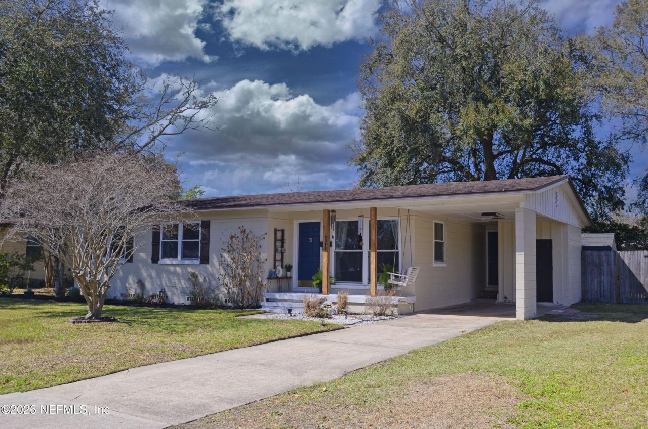 Welcome to this beautiful home in the heart of Jacksonville! Built in 1956, this charming 3-bedroom home with 1,435 SF in the desirable San Jose neighborhood offers a perfect blend of classic Florida style and modern updates. Step inside to discover a bright and inviting interior with two separate living areas providing flexibility for family gatherings along with a large wood burning fireplace! The updated kitchen and bathroom boasts contemporary finishes. Outside, enjoy the expansive covered screen porch ideal for relaxing and outdoor dining, overlooking a well-maintained fenced backyard with plenty of room for gardening or play. The attached 1-car carport includes a convenient laundry/utility room. Roof replaced in 2018 and Water Heater replaced in 2020!