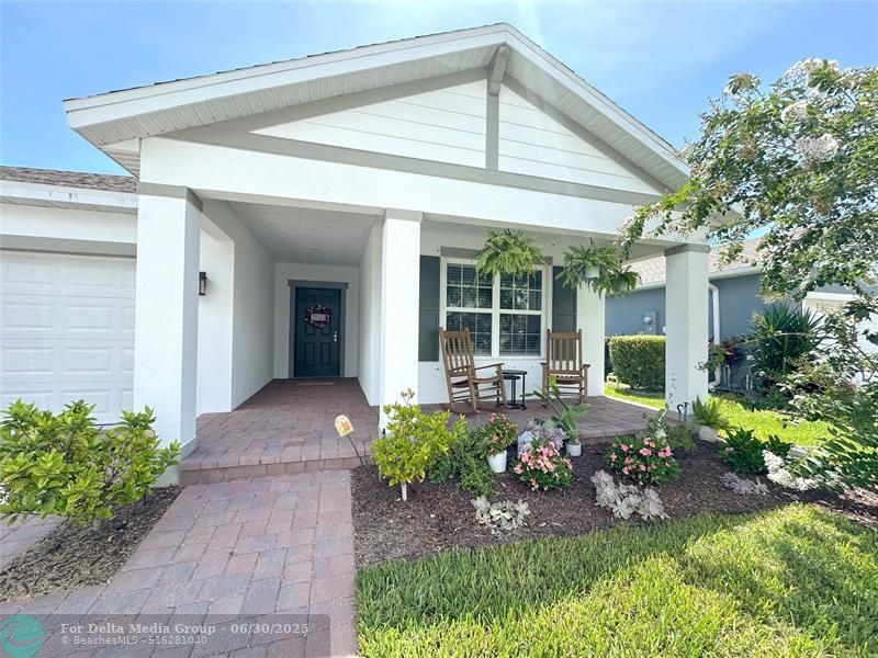 Better than new! Upgraded full front porch, tile flooring throughout, extended covered patio. Open floor plan, ideal for gatherings. Island, granite countertops, white cabinets w/crown molding. Primary suite is spacious, oversized walk in closet. Vanity with 2 sinks and plenty of storage. Walk in shower with floor to ceiling tile. Split plan, 2nd. bath combo tub/shower also with floor to ceiling tiles! Gated community, community pool, clubhouse, tennis/pickle ball and basket ball courts. Short distance to beach, boating & fishing!