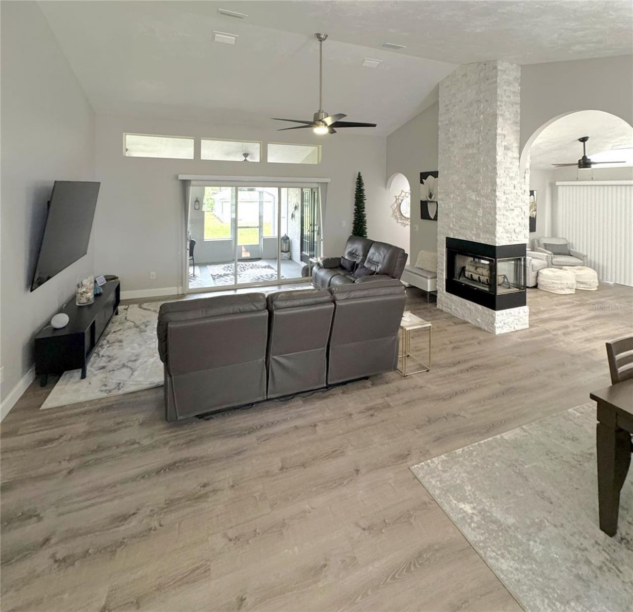 Country Living Without Isolation - 2 Private Acres, Massive Garage & Easy Beach Access. Experience the perfect blend of privacy, space, and modern comfort in this beautifully custom-built 3-bedroom, 2-bath concrete block home, set on two meticulously maintained acres along a quiet, private drive. Enjoy true peace and seclusion while being just 20 minutes from the beaches of New Smyrna and conveniently close to Orlando and Sanford airports.Thoughtfully remodeled in 2021, the home features luxury vinyl plank flooring throughout, a stunning chef's kitchen with magnificent quartz countertops, smart appliances, and a show-stopping fireplace that creates an immediate 'wow factor upon entry. Vaulted ceilings throughout highlight the home's quality custom construction and enhance the open, airy feel.The attached two-car garage includes a dedicated 30-amp EV charging outlet, while major upgrades bring peace of mind, including a new 3.5-ton A/C system and 40-gallon smart water heater installed in 2024.For those who need space for hobbies, vehicles, or equipment, the 1,200-sq-ft detached 30??40 garage is a standout-featuring LED lighting, an interior water filtration system, and an expansive RV pad with power hookup and its own septic. There's room here for boats, RVs, and all your toys.Equestrian and agricultural enthusiasts will love the three-horse pole barn with power and water, along with two separate fenced pastures, allowing for multiple horses if desired.Take in the beauty of the property from the spacious 300-sq-ft screened porch, the perfect spot for morning coffee or sunset views. Come experience how close you are to everything-while feeling a world away.